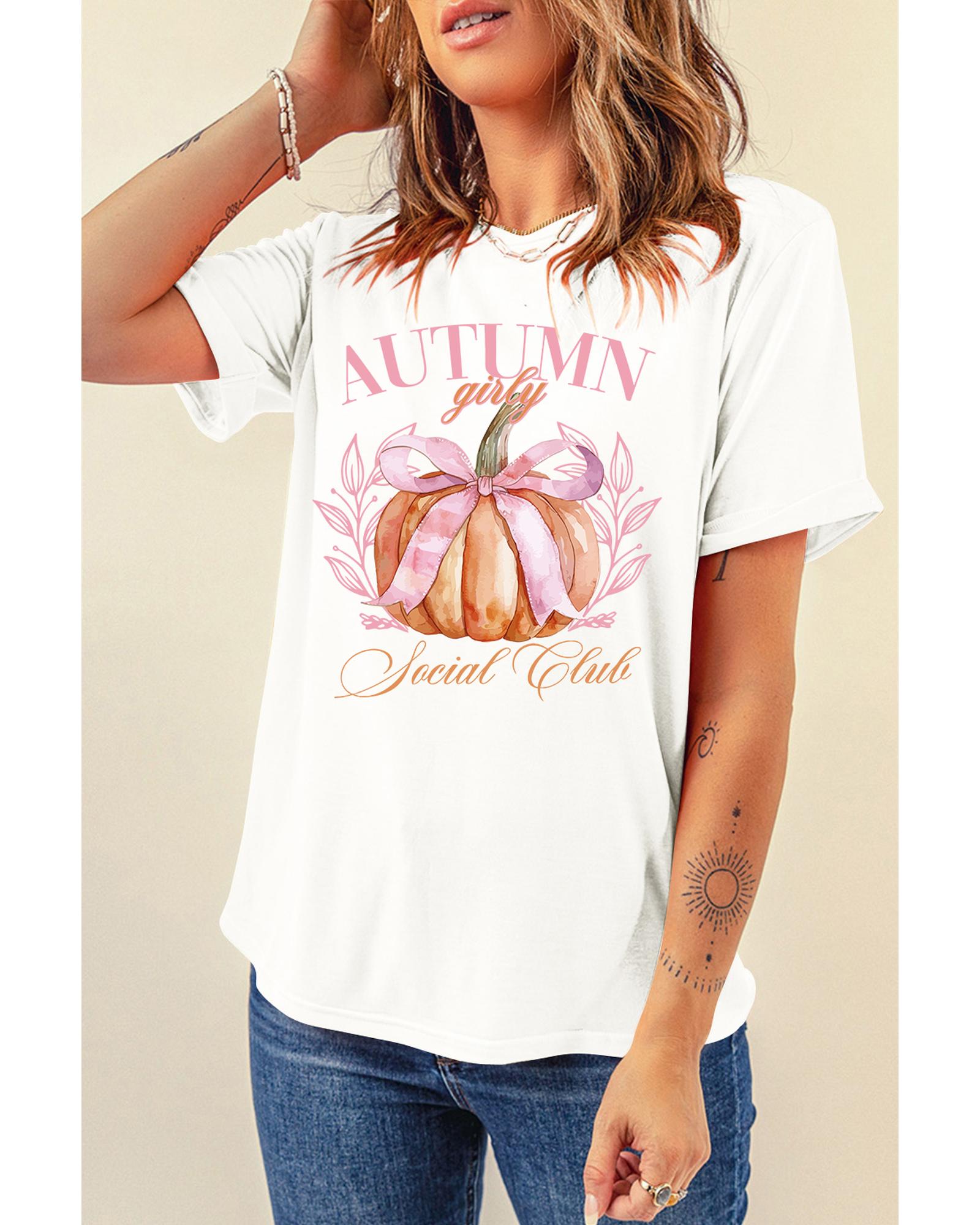 White Autumn Girly Thanksgiving Bowknot Pumpkin Graphic T Shirt – 2XL