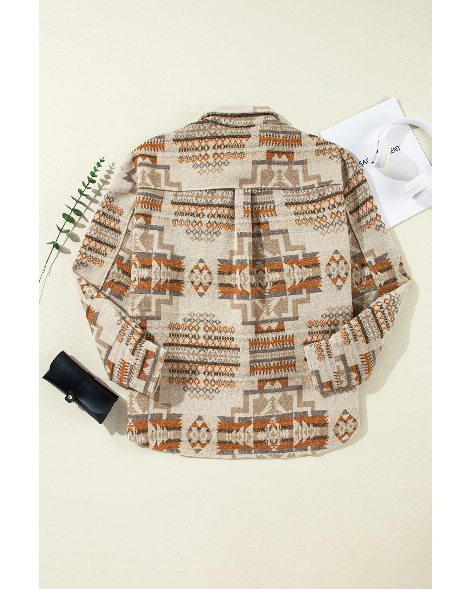 White Aztec Geometric Print Pockets Plus Size Jacket – 3X