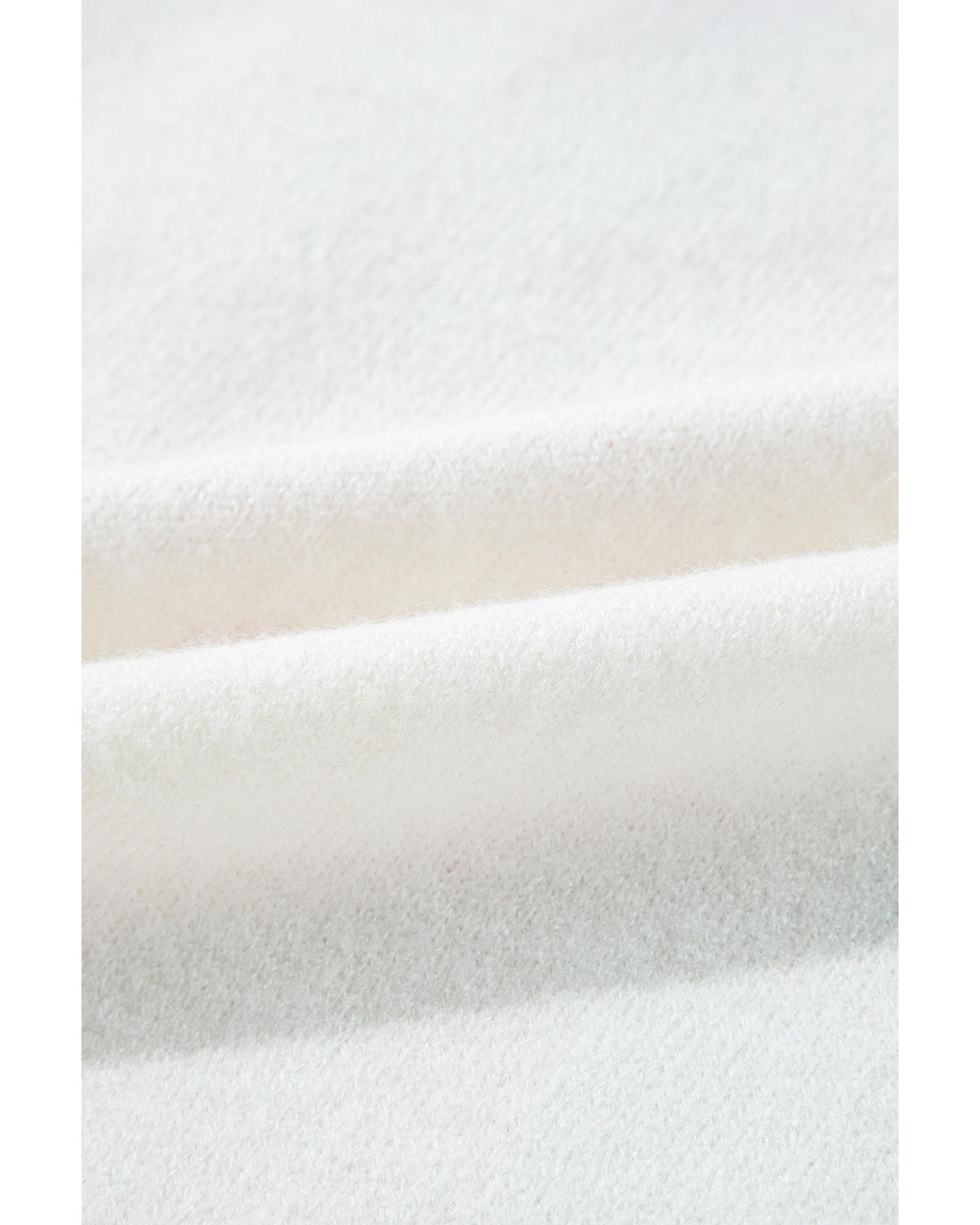 White Big Flower Pattern V Neck Drop Shoulder Sweater – M
