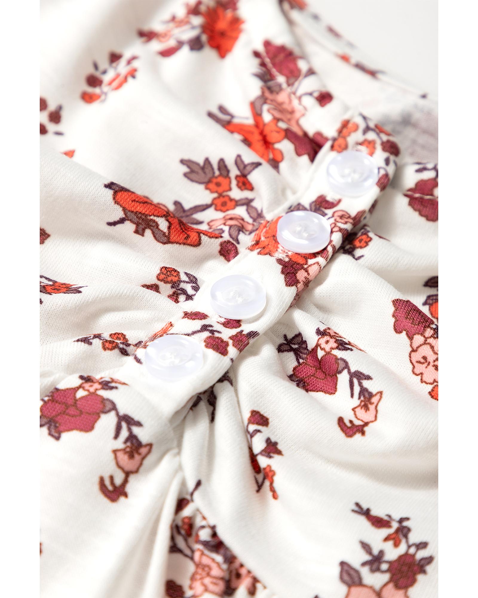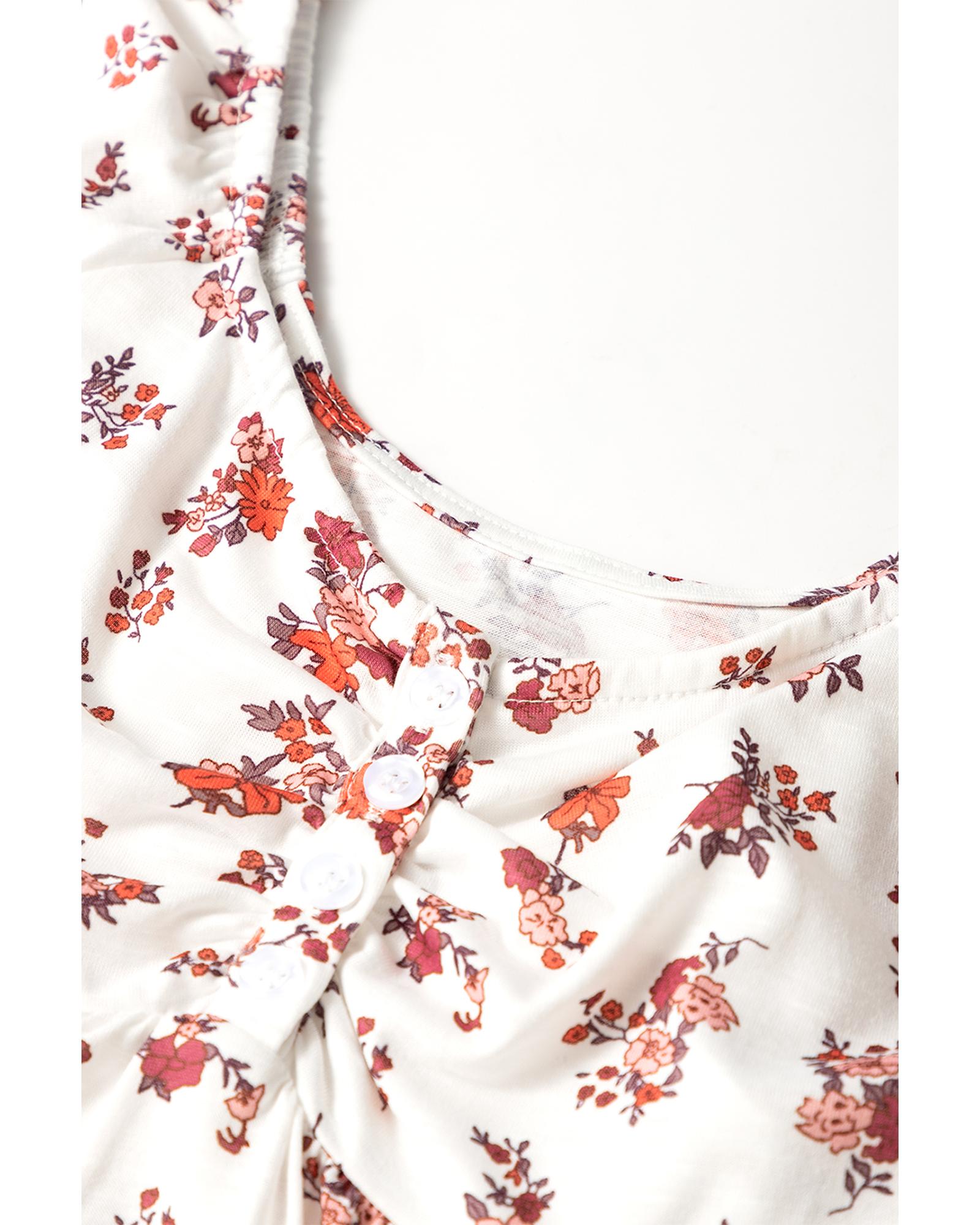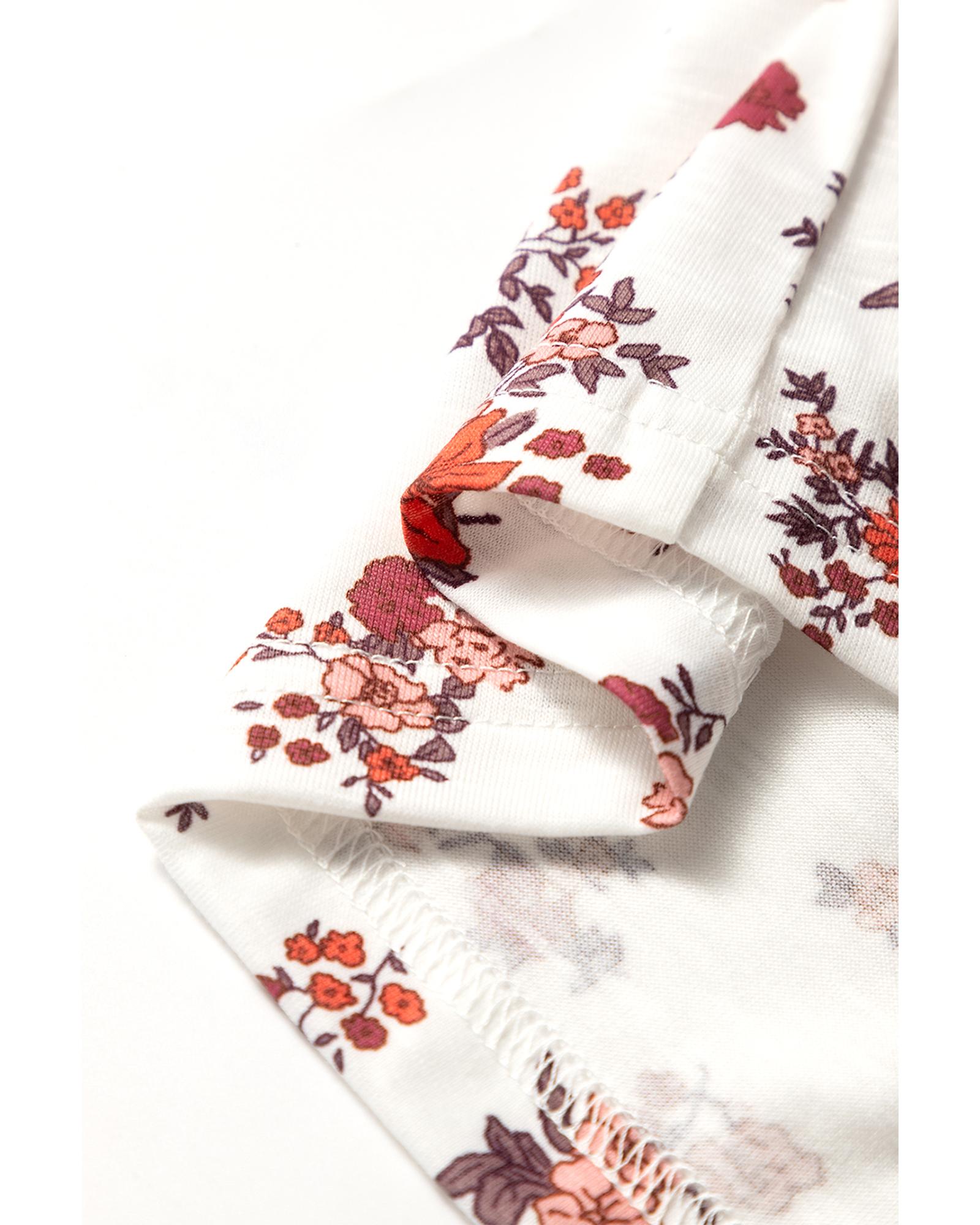 White Boho Floral Ruched Cinched Short Sleeve Blouse – L