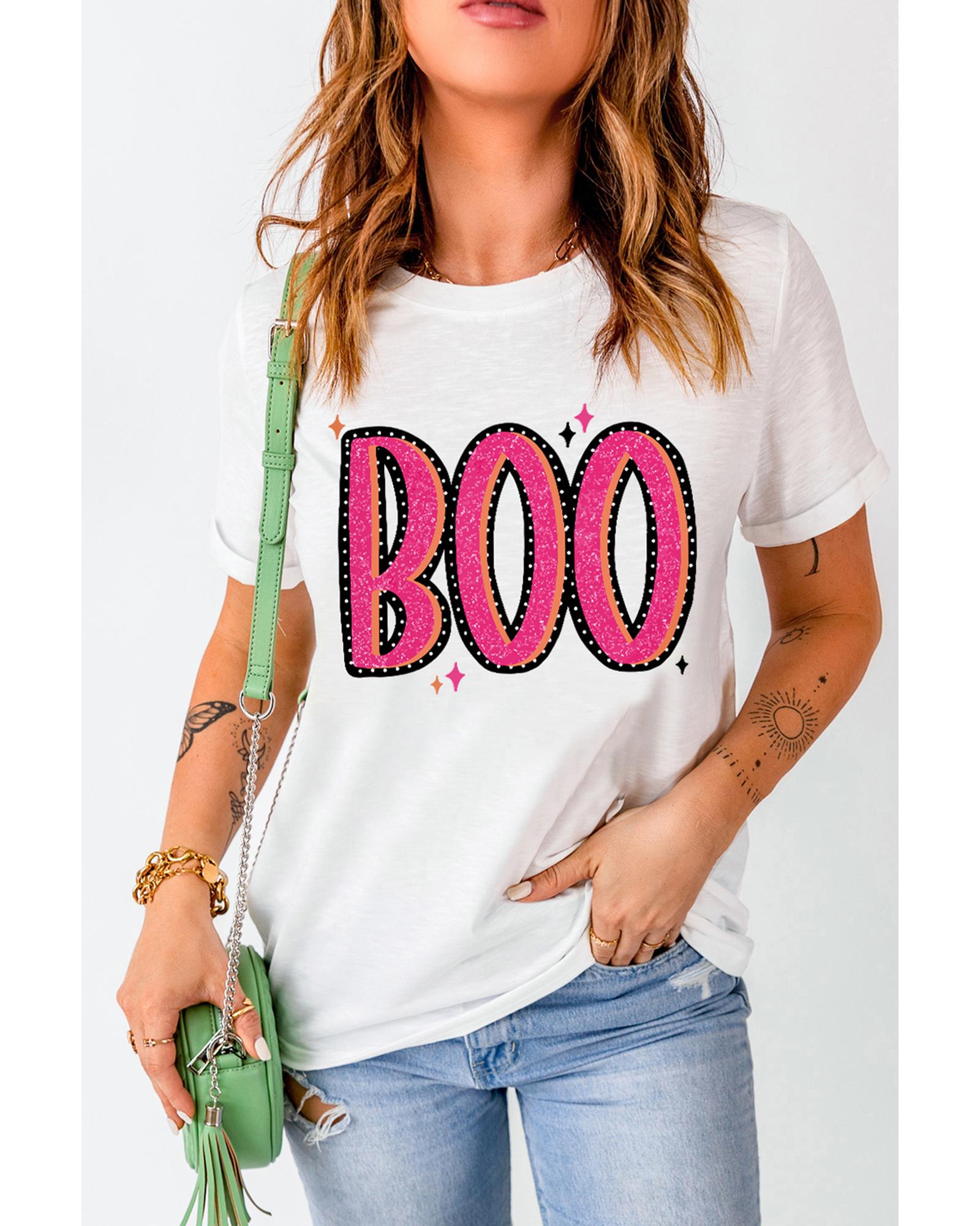 White BOO Crew Neck Graphic T Shirt – 2XL