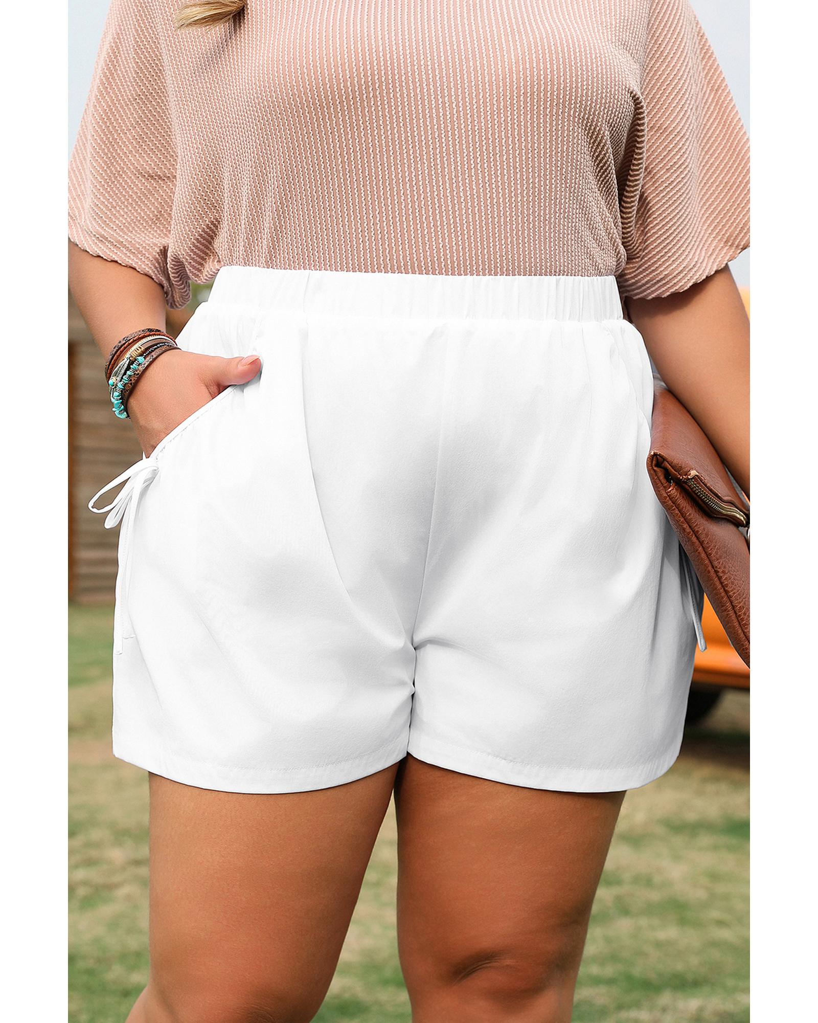 White Bow Decor Pockets Plus Size Shorts – 2X