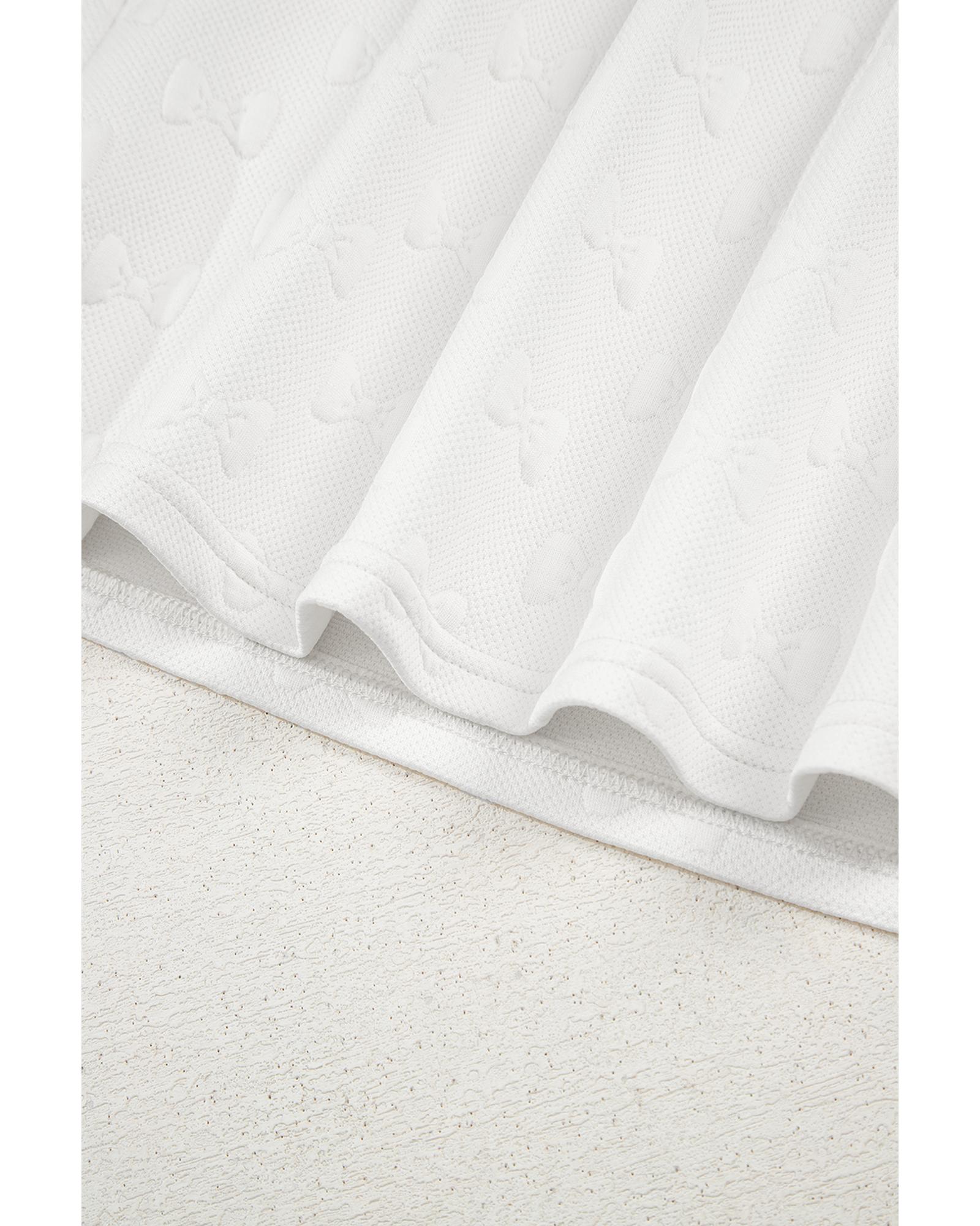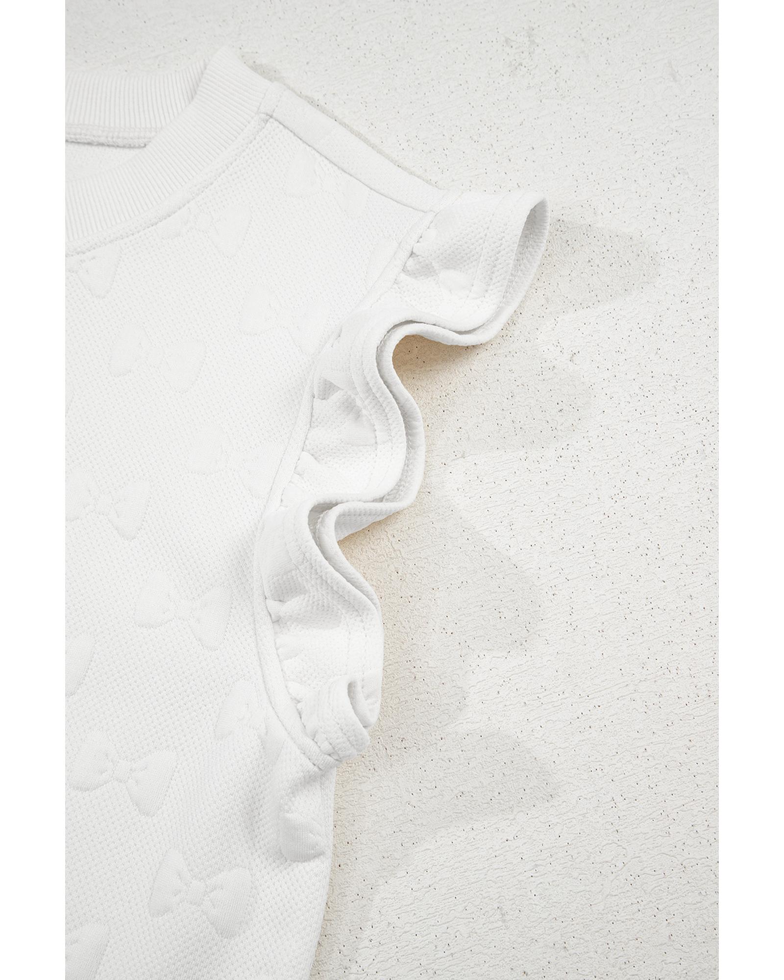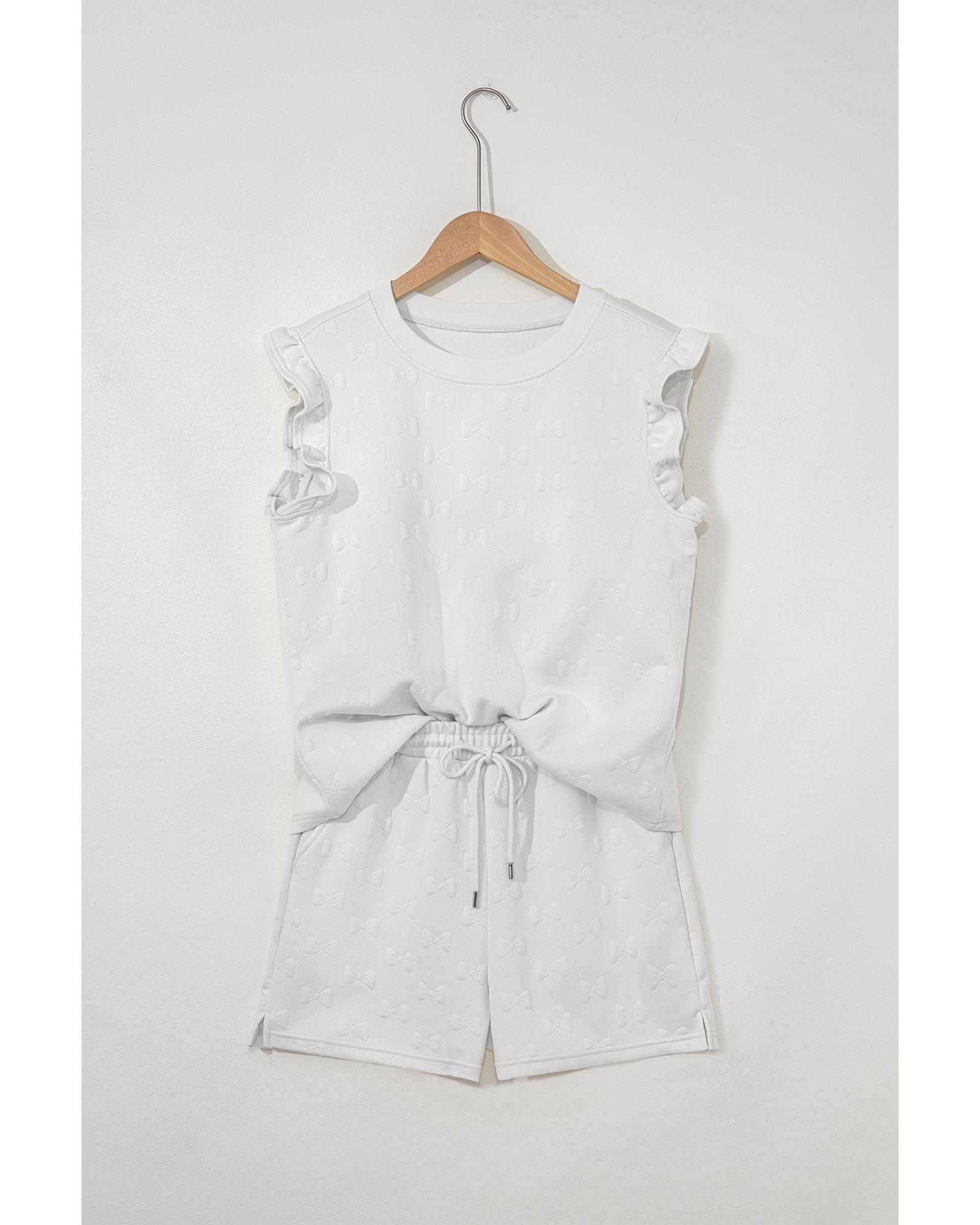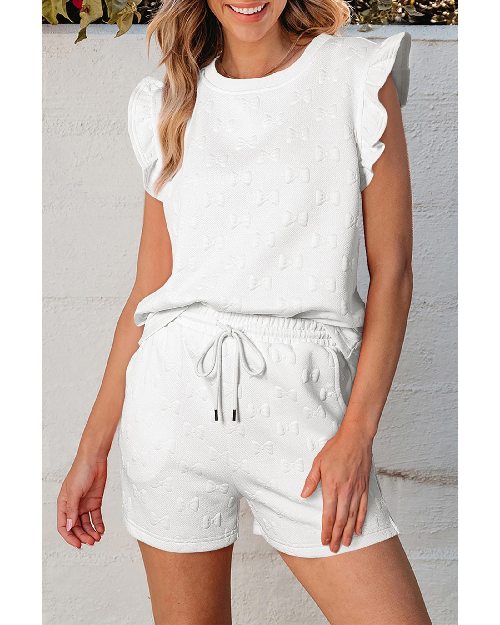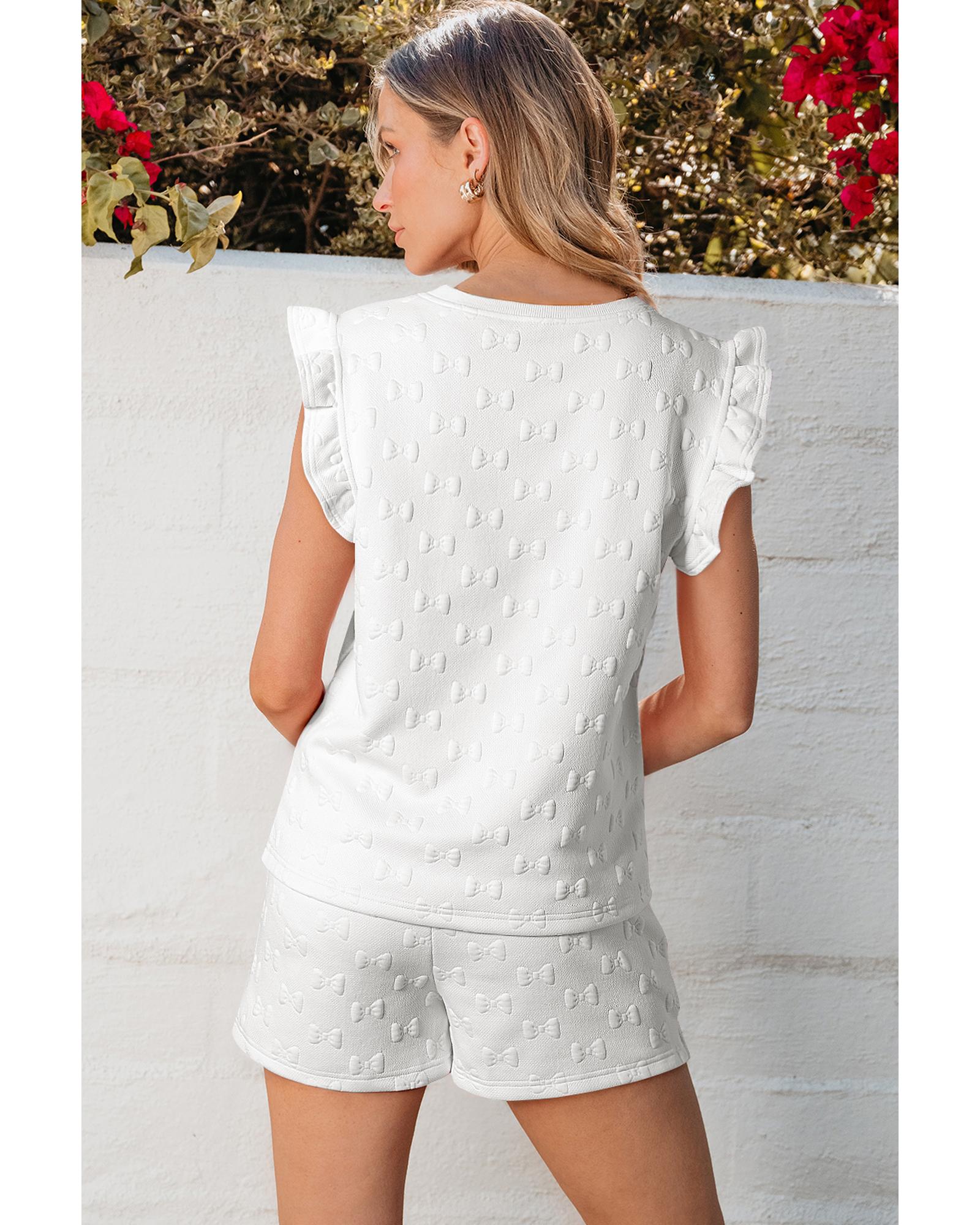 White Bow Jacquard Ruffle Sleeve Short 2pcs Outfit – L