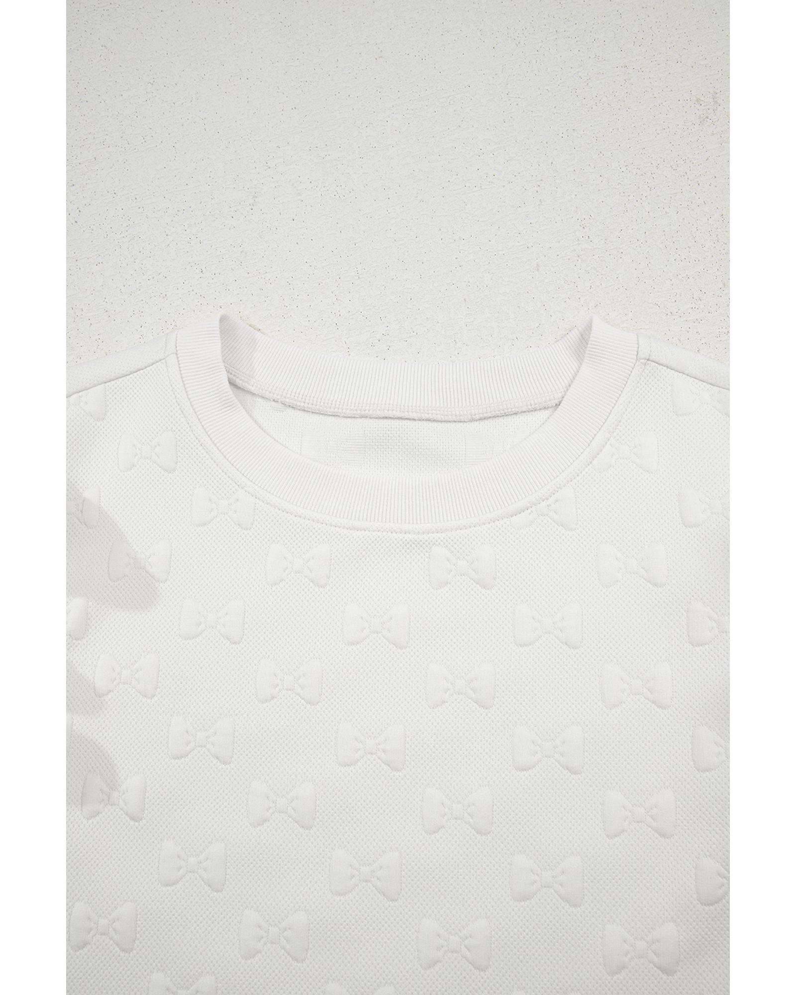 White Bow Jacquard Ruffle Sleeve Short 2pcs Outfit – M