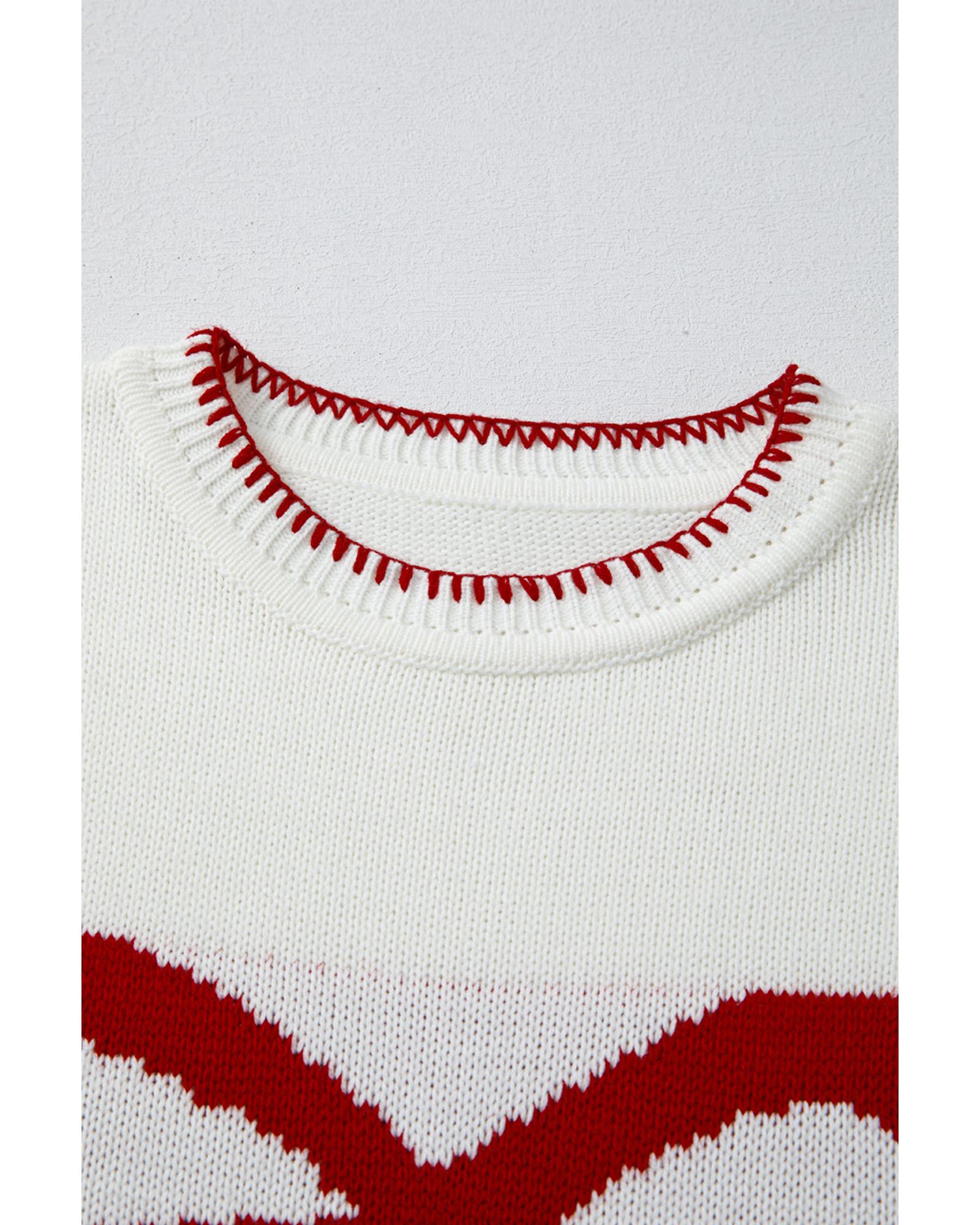 This Christmas sweater features a charming white bow pattern with contrasting trim, creating a festive and stylish look. Designed with a loose fit, it offers comfort for all-day wear. The eye-catching graphic design makes it a standout piece for holiday celebrations.