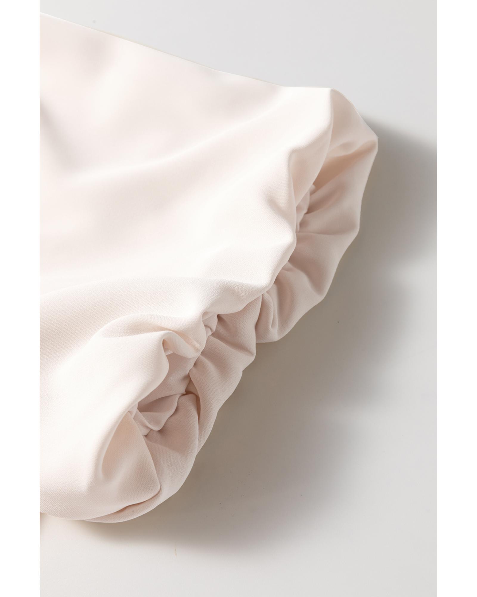 White Bow Tie Short Puff Sleeve Ruffle Hem Blouse – XL