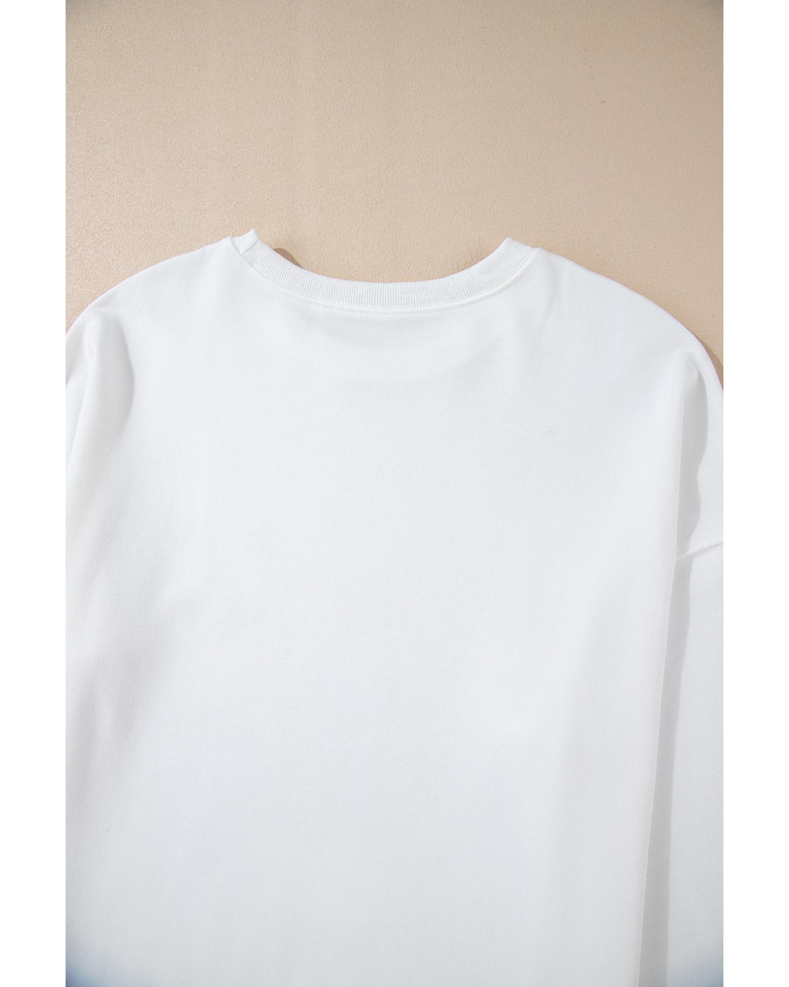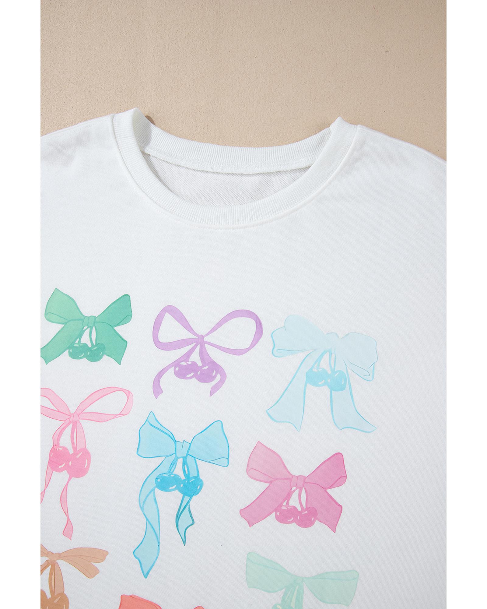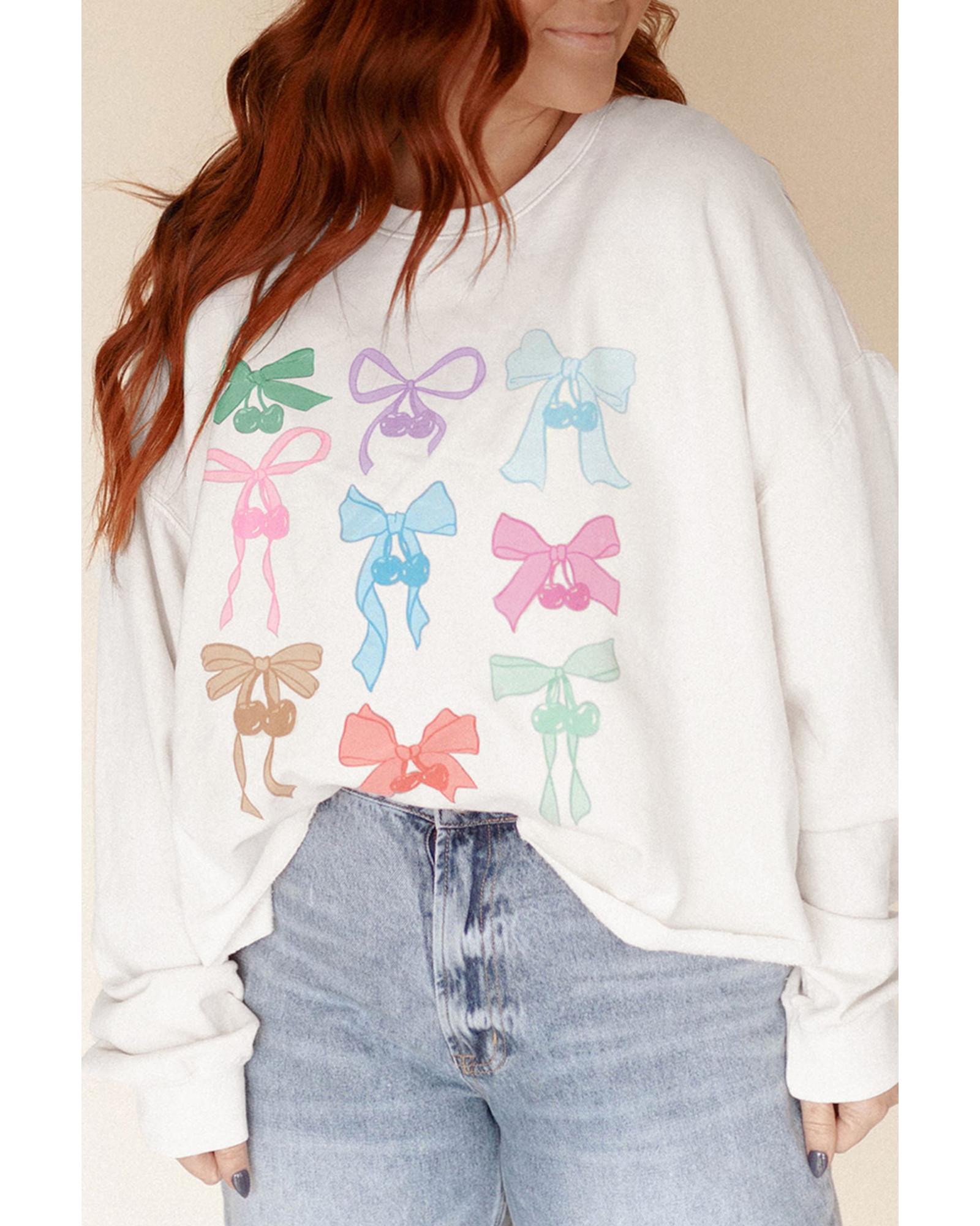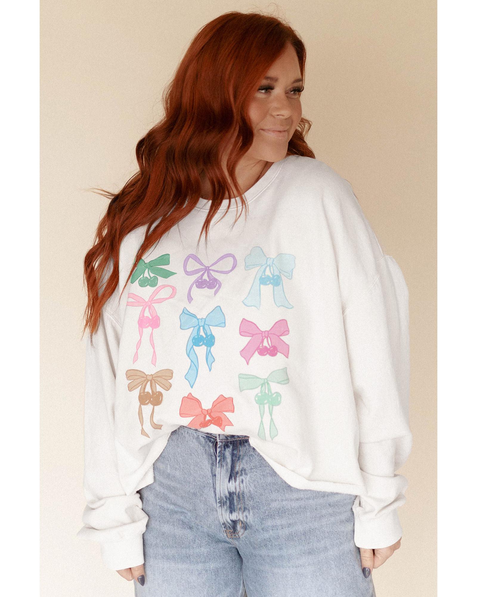 White Bowknot Pattern Drop Shoulder Loose Sweatshirt – 2XL