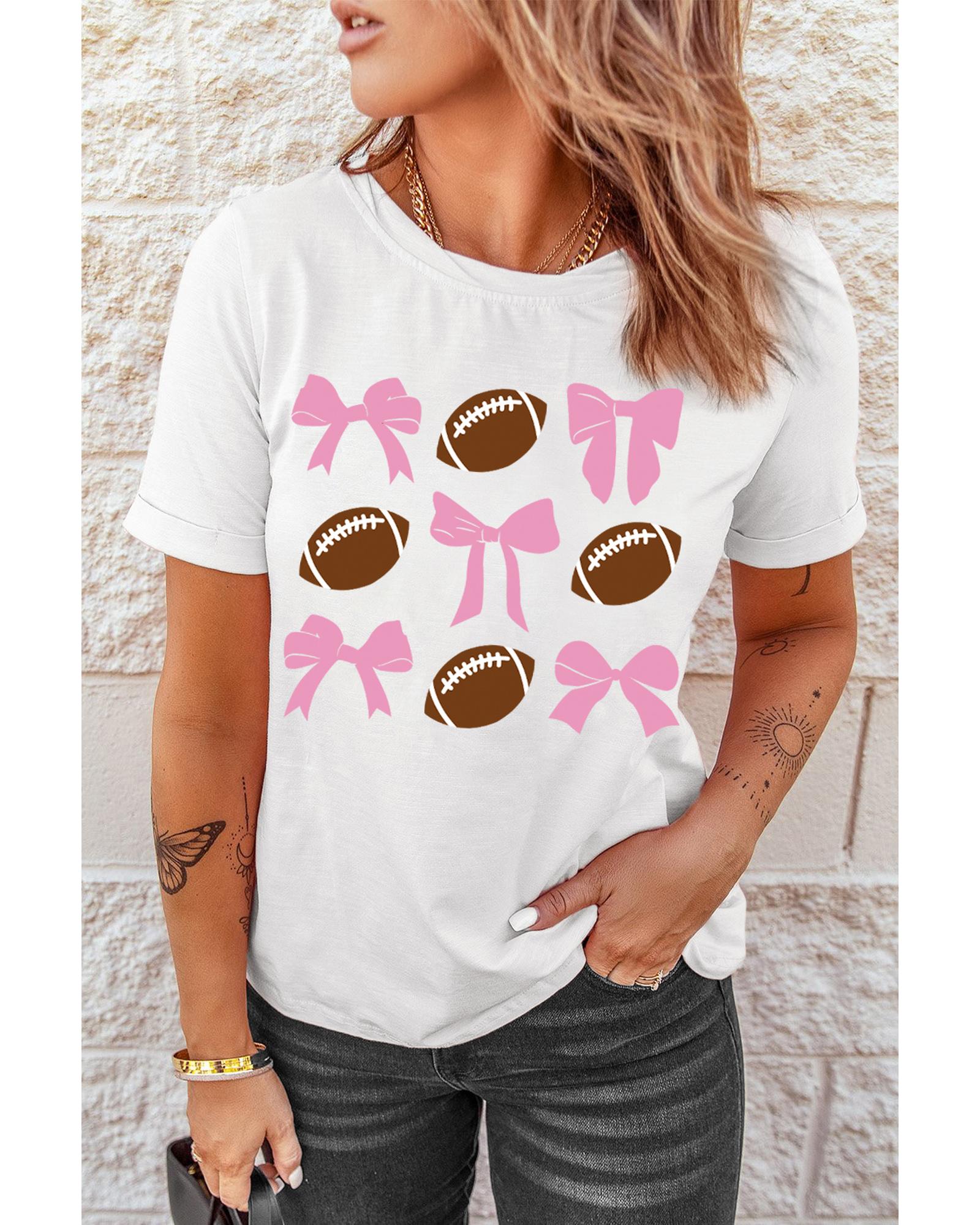 White Bowknot Rugby Football Printed Game Day T Shirt – XL