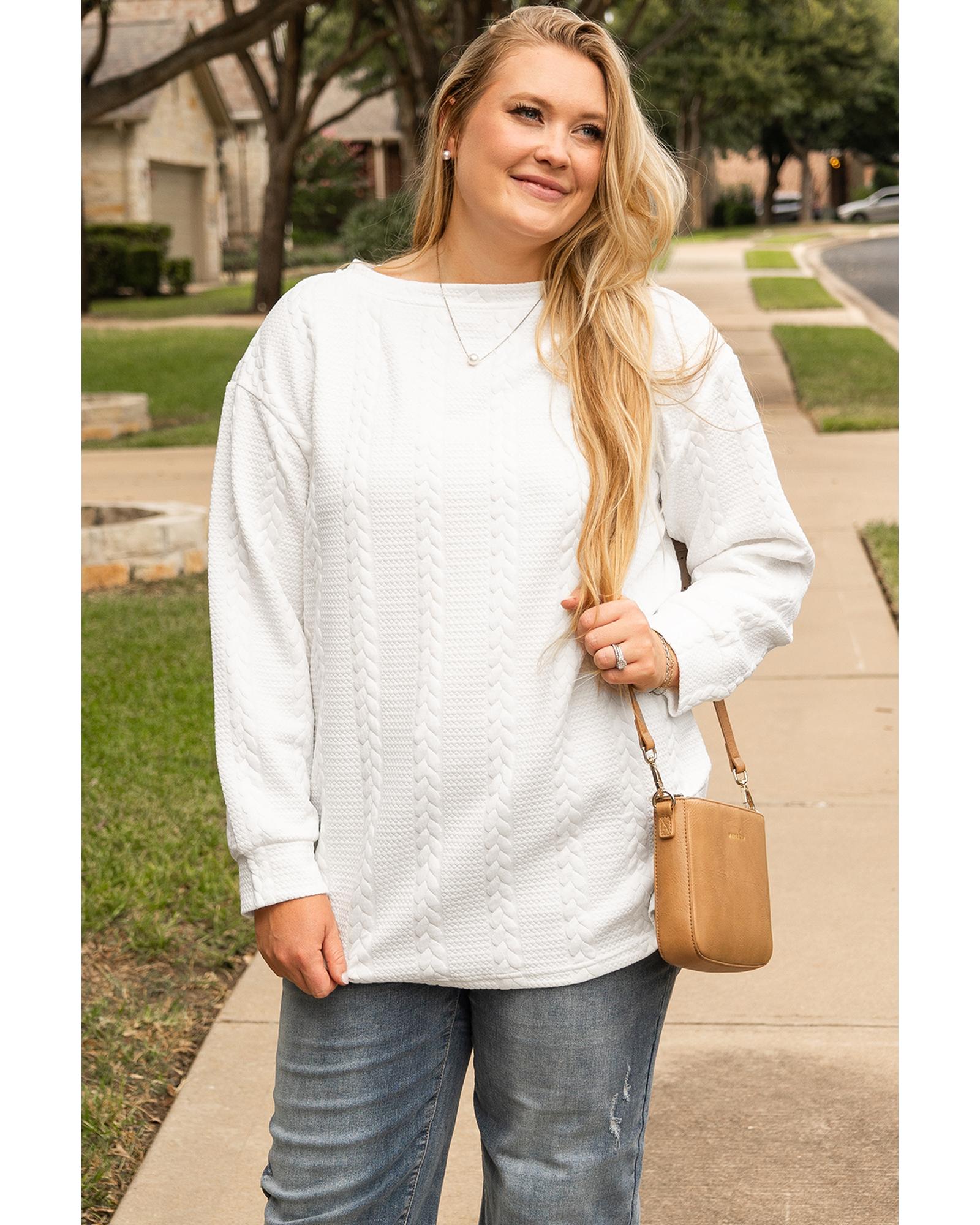 White Cable Textured Loose Plus Size Sweatshirt – 1X