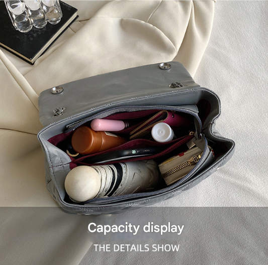 This quilted crossbody bag combines classic elegance with modern practicality. Made from high-quality PU leather, it features a diamond quilted pattern and a stylish metal chain strap, making it a versatile accessory suitable for various occasions.