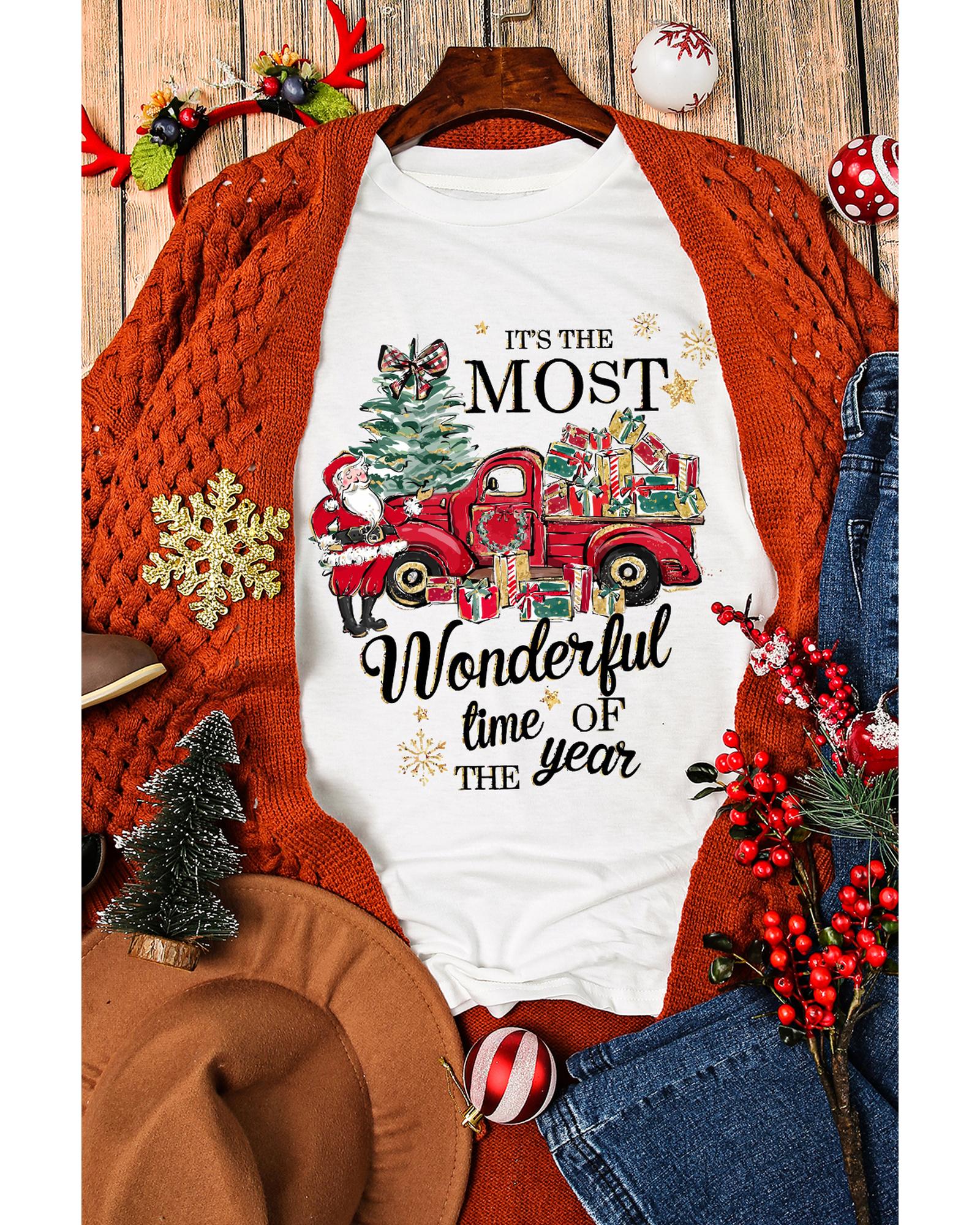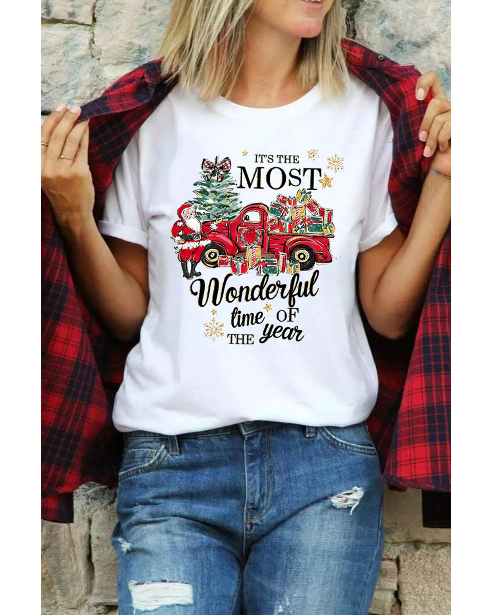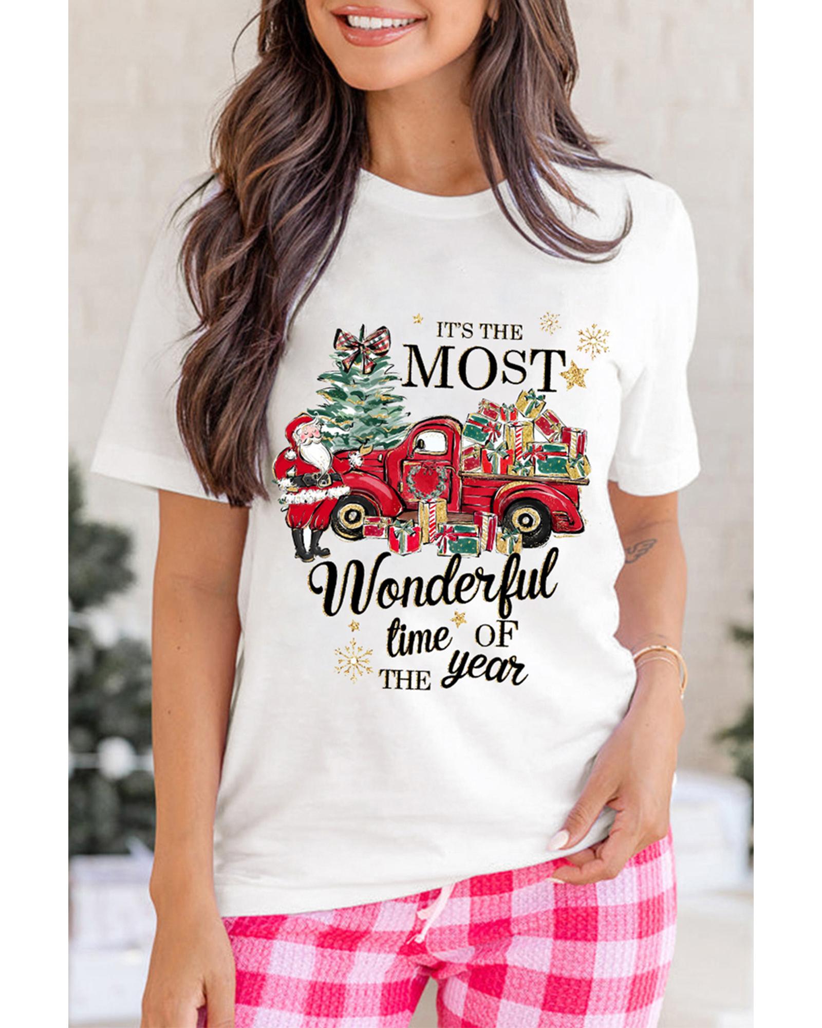 This festive T-shirt features a white Christmas pattern with slogan print, combining style and comfort for holiday celebrations. It is designed with a classic crew neck and short sleeves, making it suitable for various casual occasions. The shirt is available in multiple sizes to ensure a good fit for different preferences.