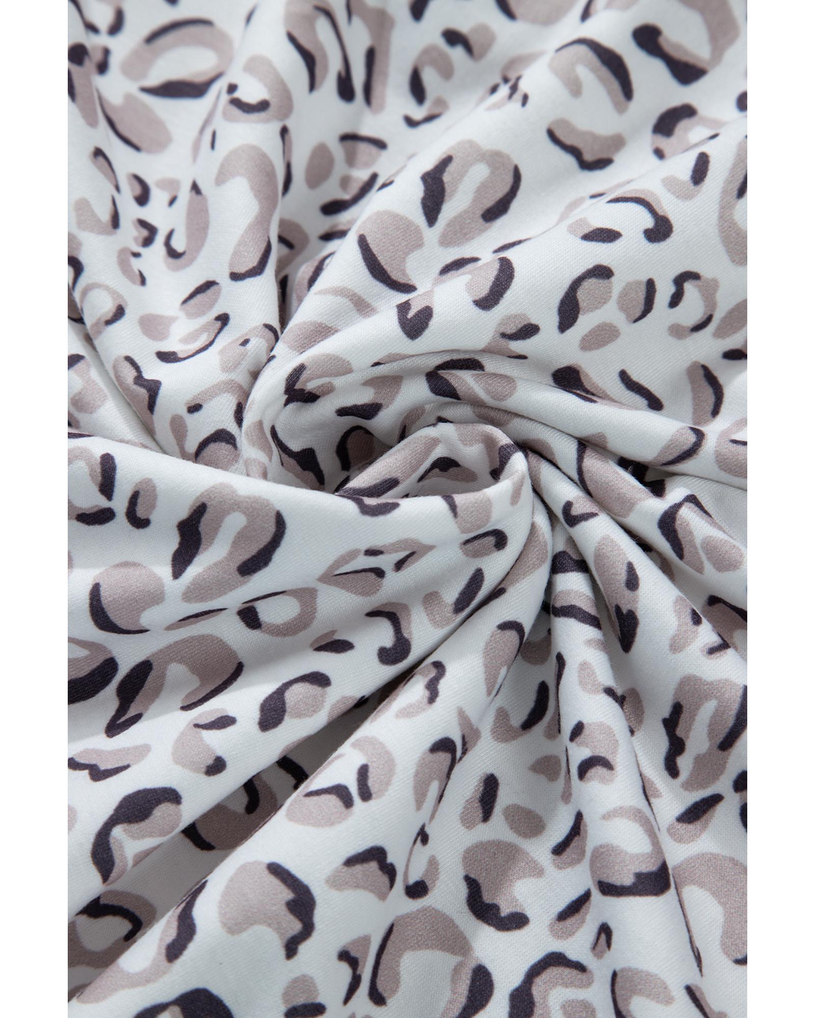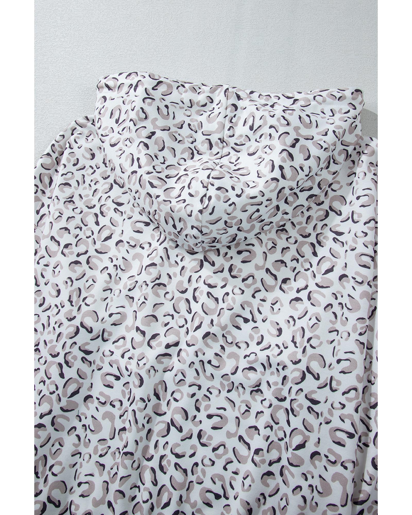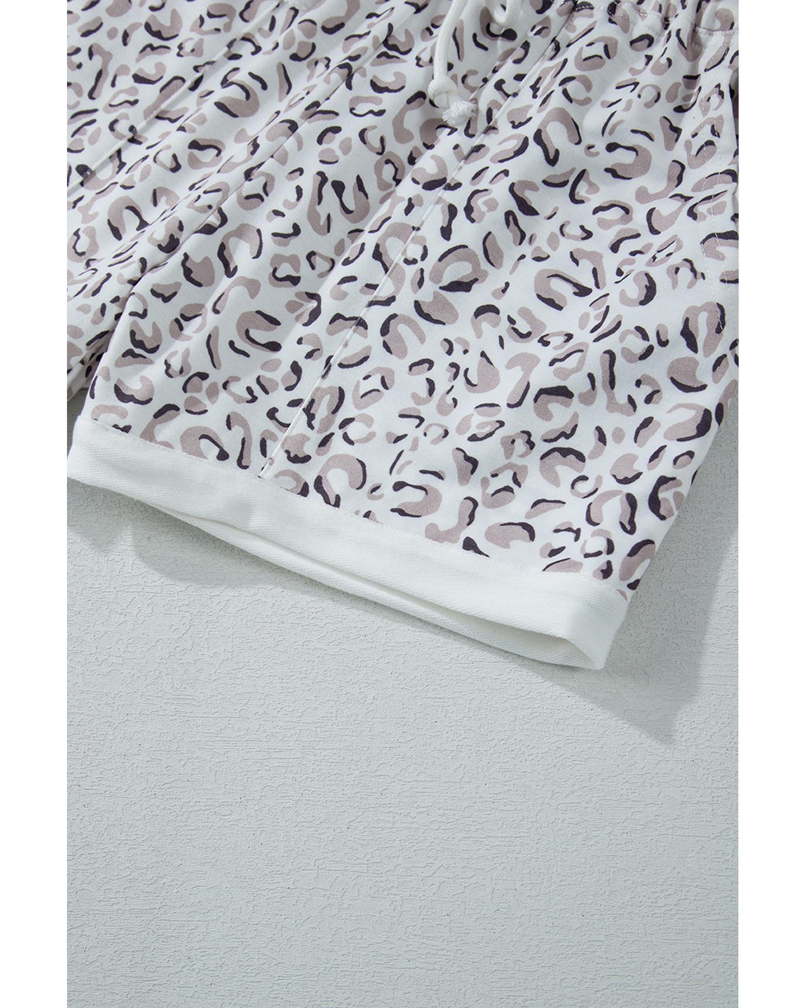White Classic Leopard Hoodie and Shorts Set – XL