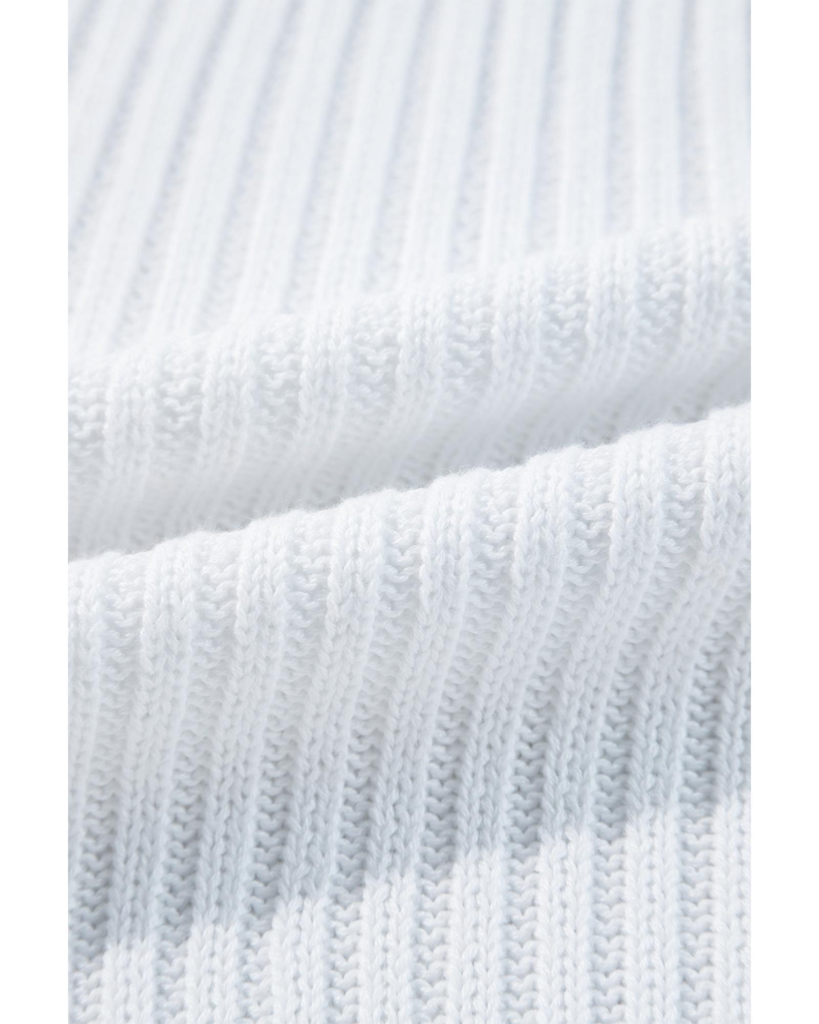White Stripe Colorful Pattern Button Front Sweater Cardigan - M