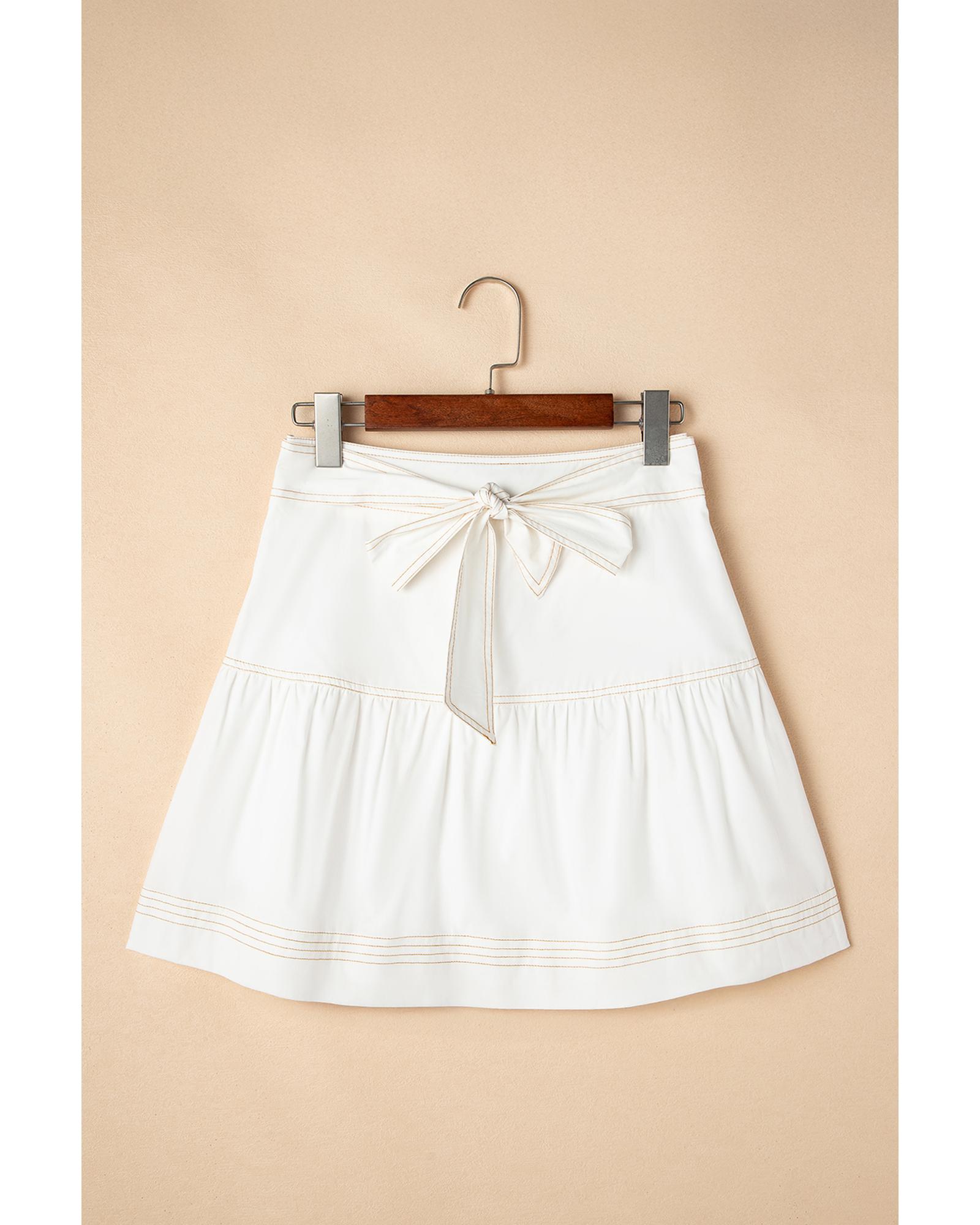 White Contrast Stitching Trim Knotted High Waist A-Line Mini Skirt – L