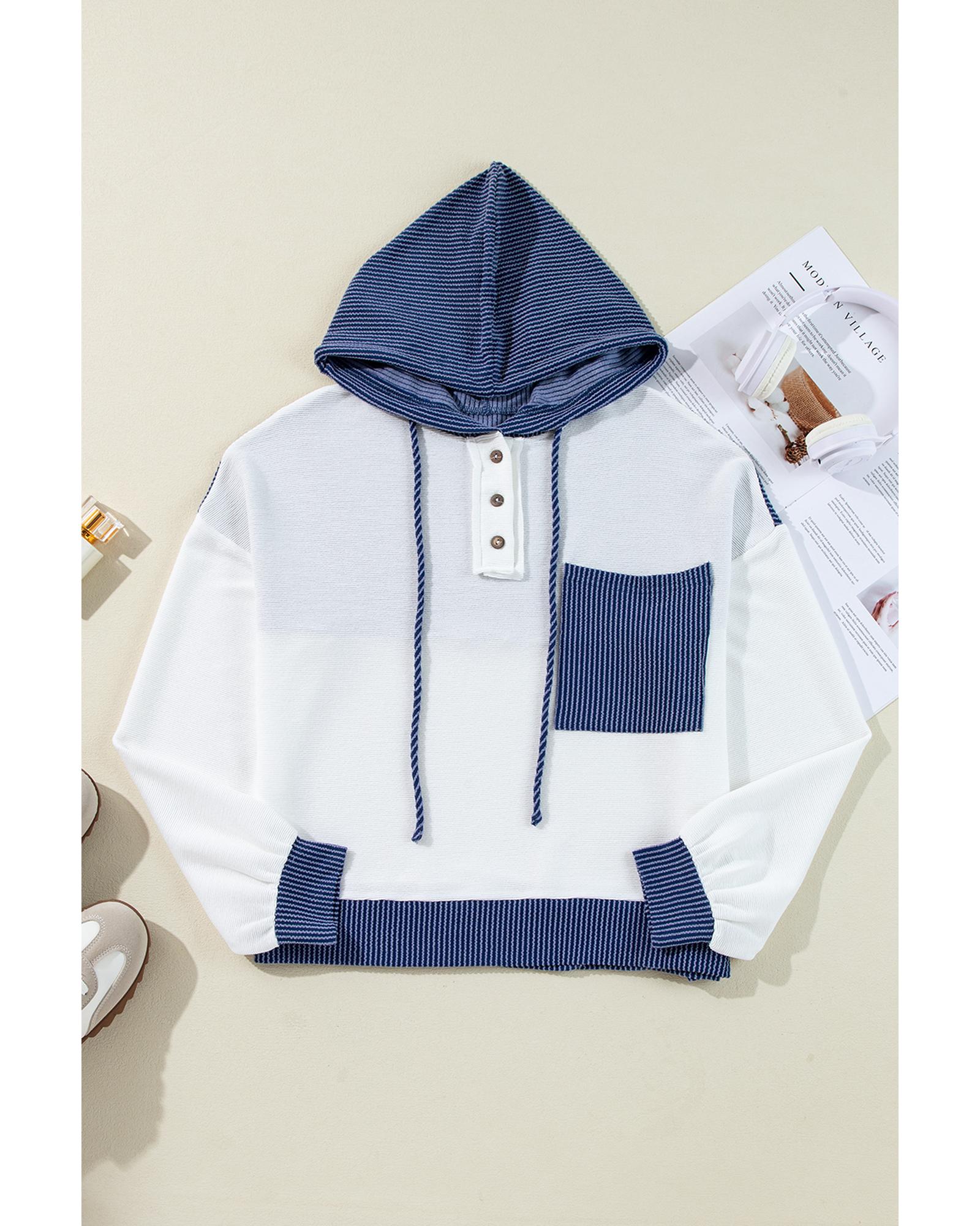 White Corded Colorblock Patch Pocket Drawstring Hooded Top – S