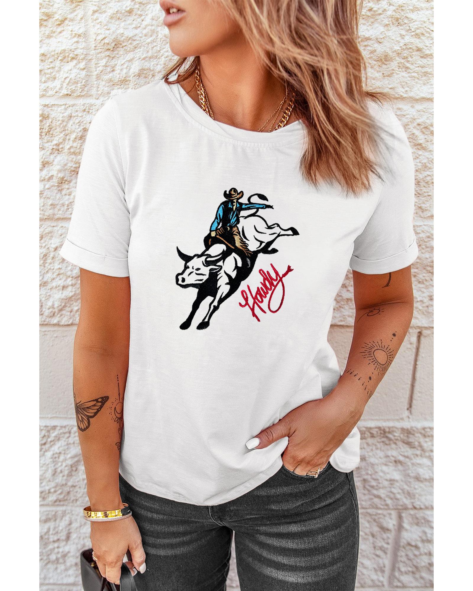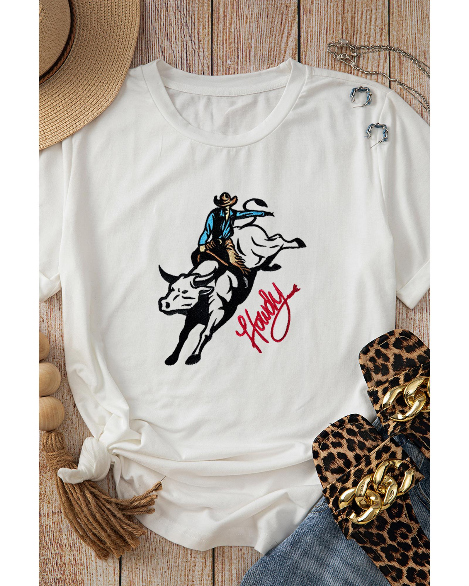 White Cowboy Howdy Embroidered Western Fashion T Shirt – 2XL
