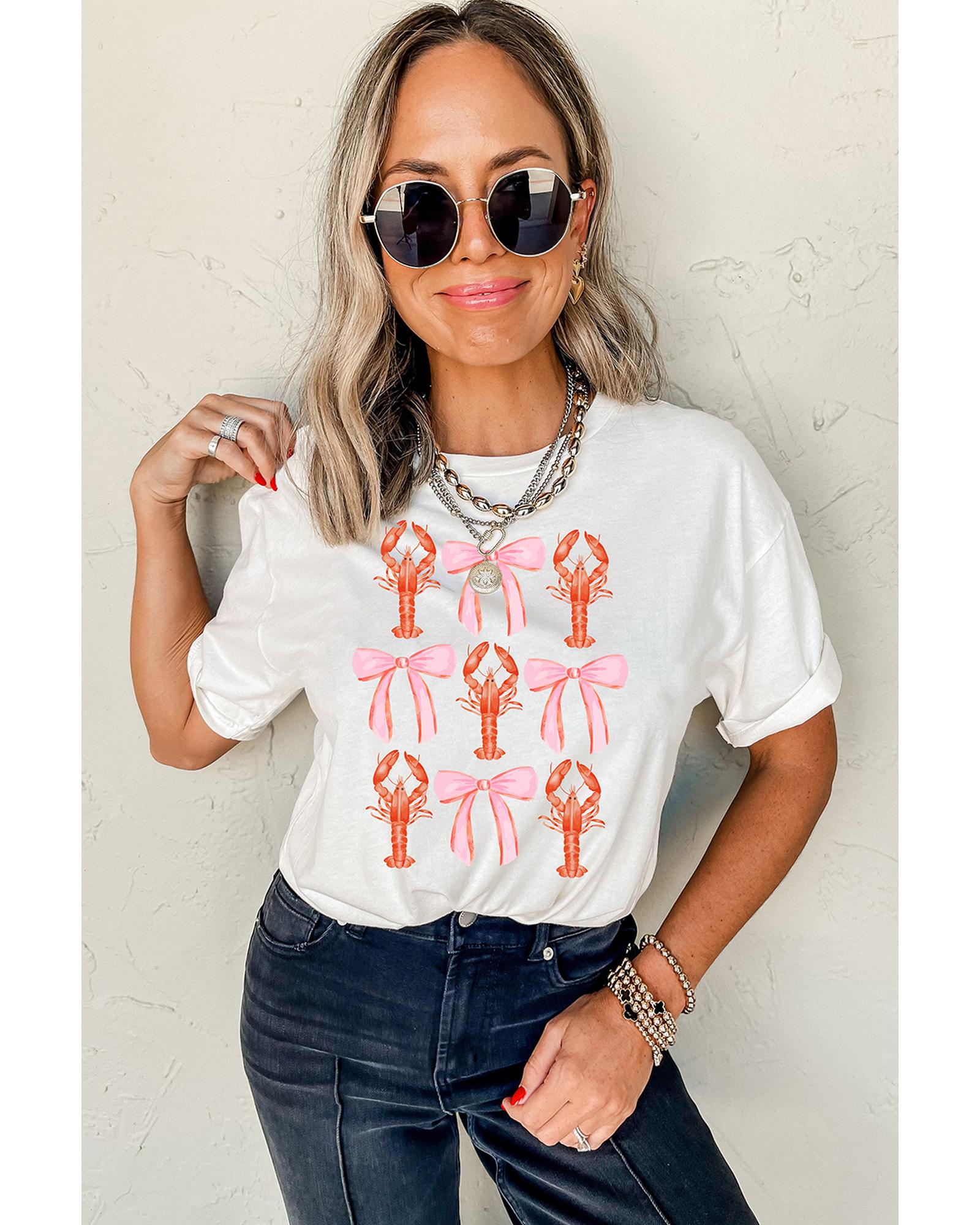 White Crawfish Bow Printed Summer T Shirt – 2XL