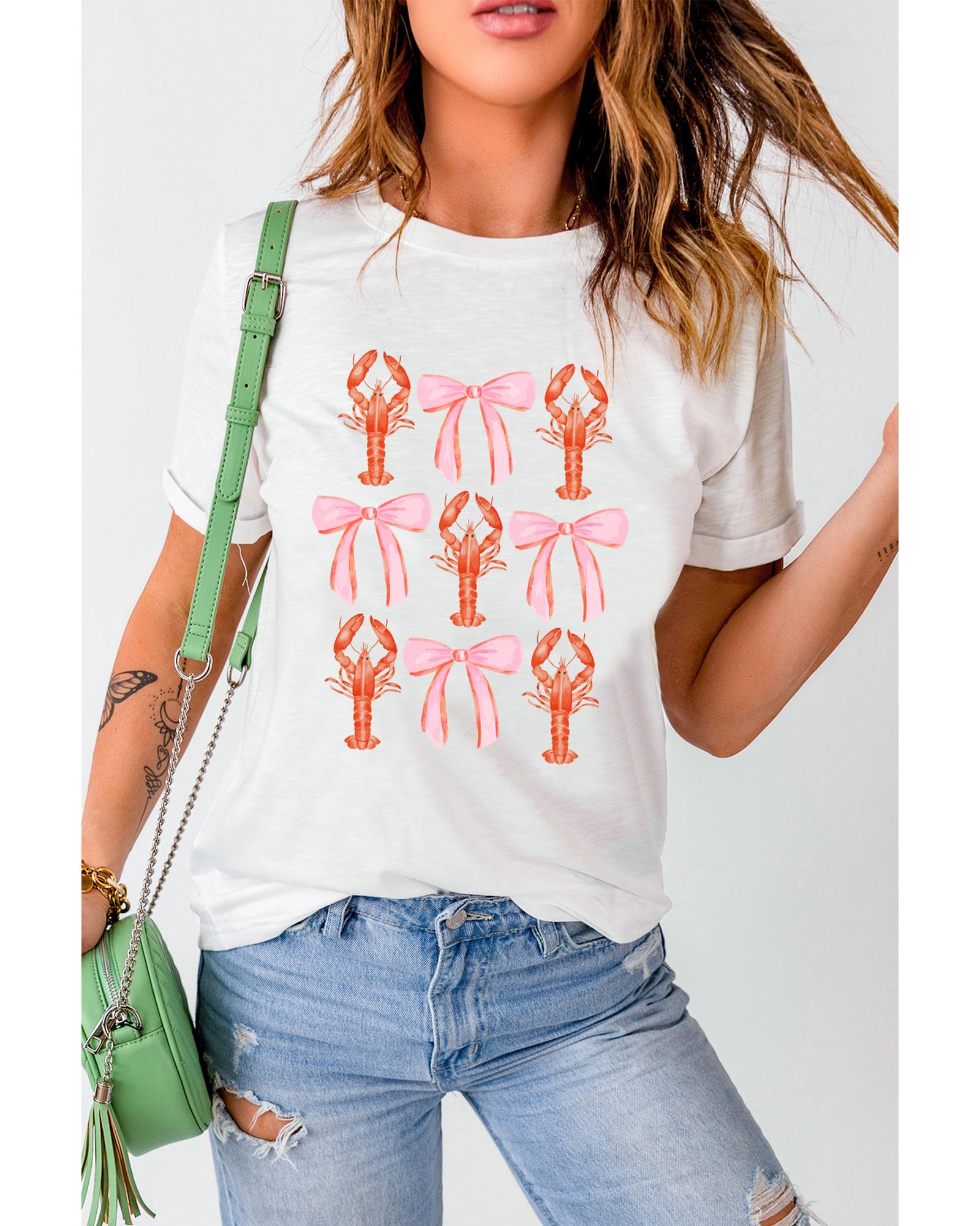 This summer T-shirt features playful crawfish graphics adorned with cute bows, making it a fun and stylish choice for warm weather. Designed with short sleeves and a relaxed fit, it offers comfort and versatility for casual wear. Crafted from a blend of polyester and cotton, it provides a breathable and soft feel, perfect for hot days. The T-shirt pairs well with jeans or denim shorts for a casual, trendy look.