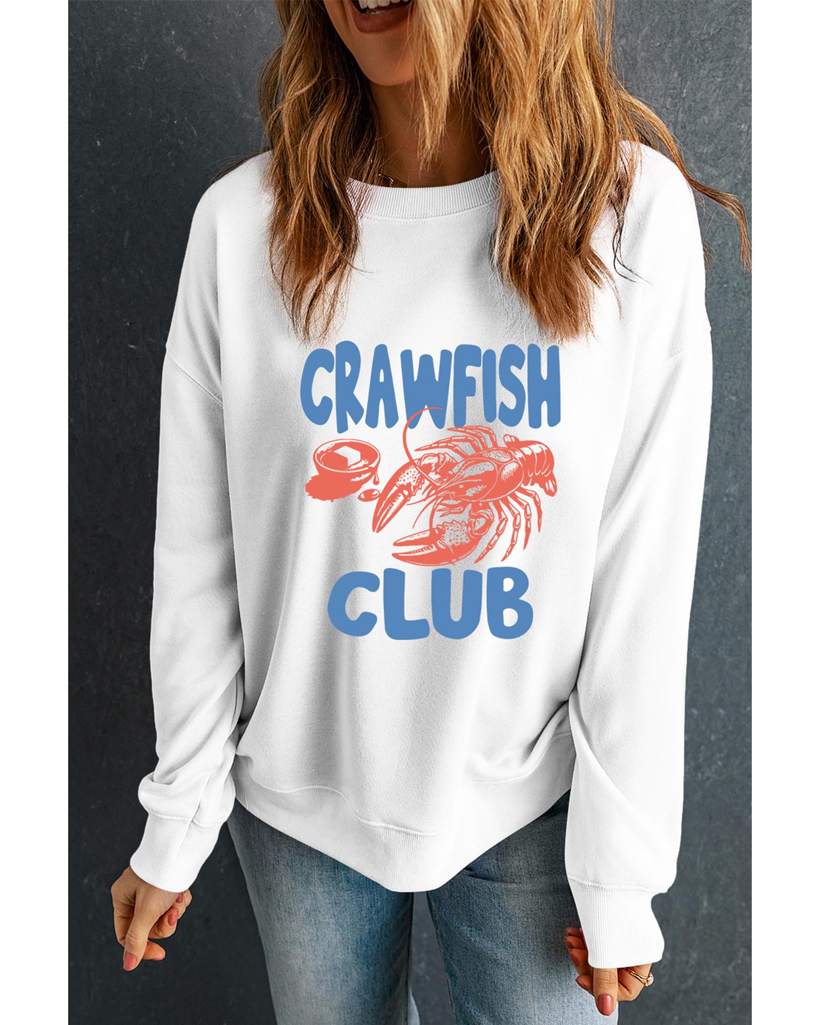 White CRAWFISH CLUB Printed Drop Shoulder Sweatshirt – S