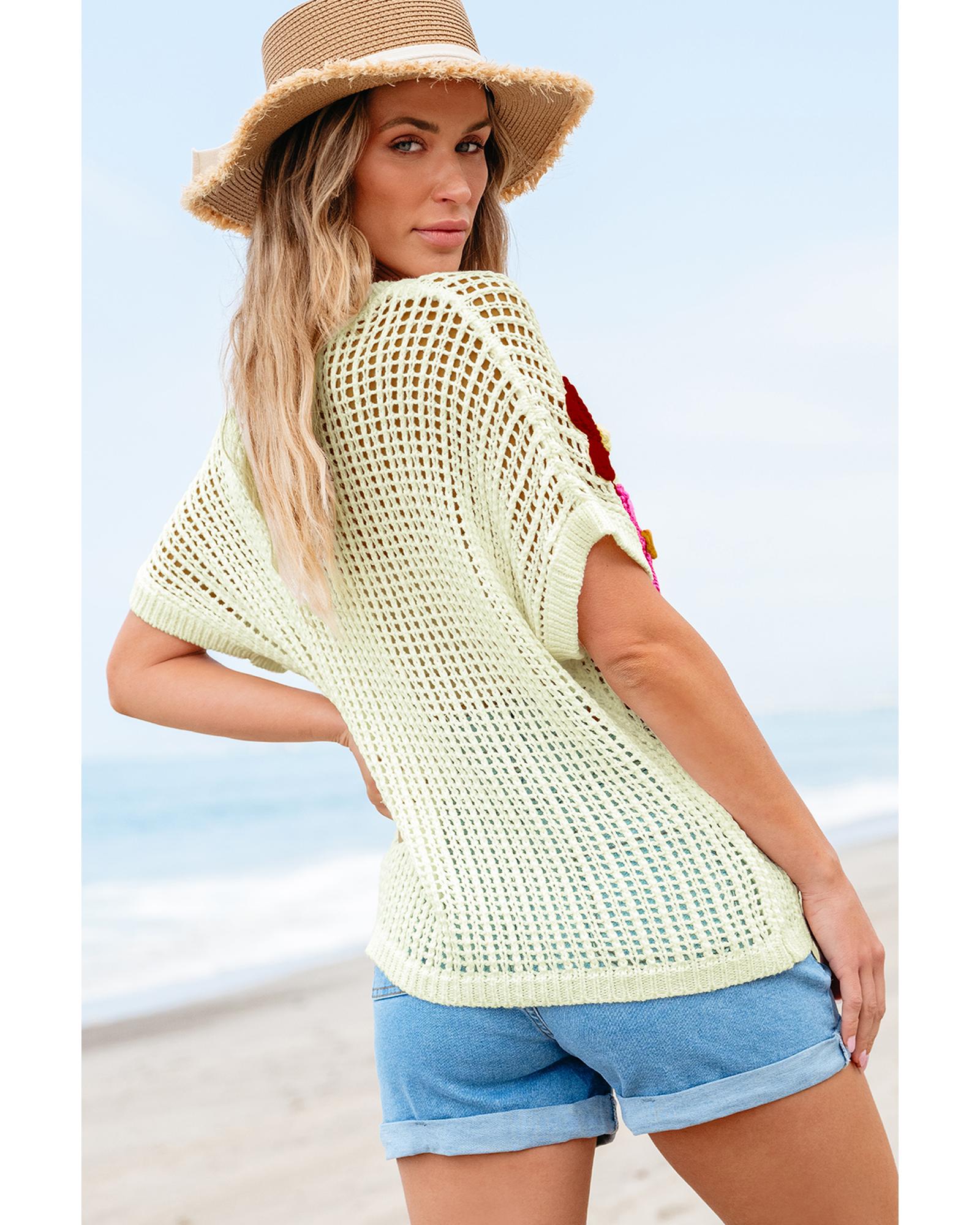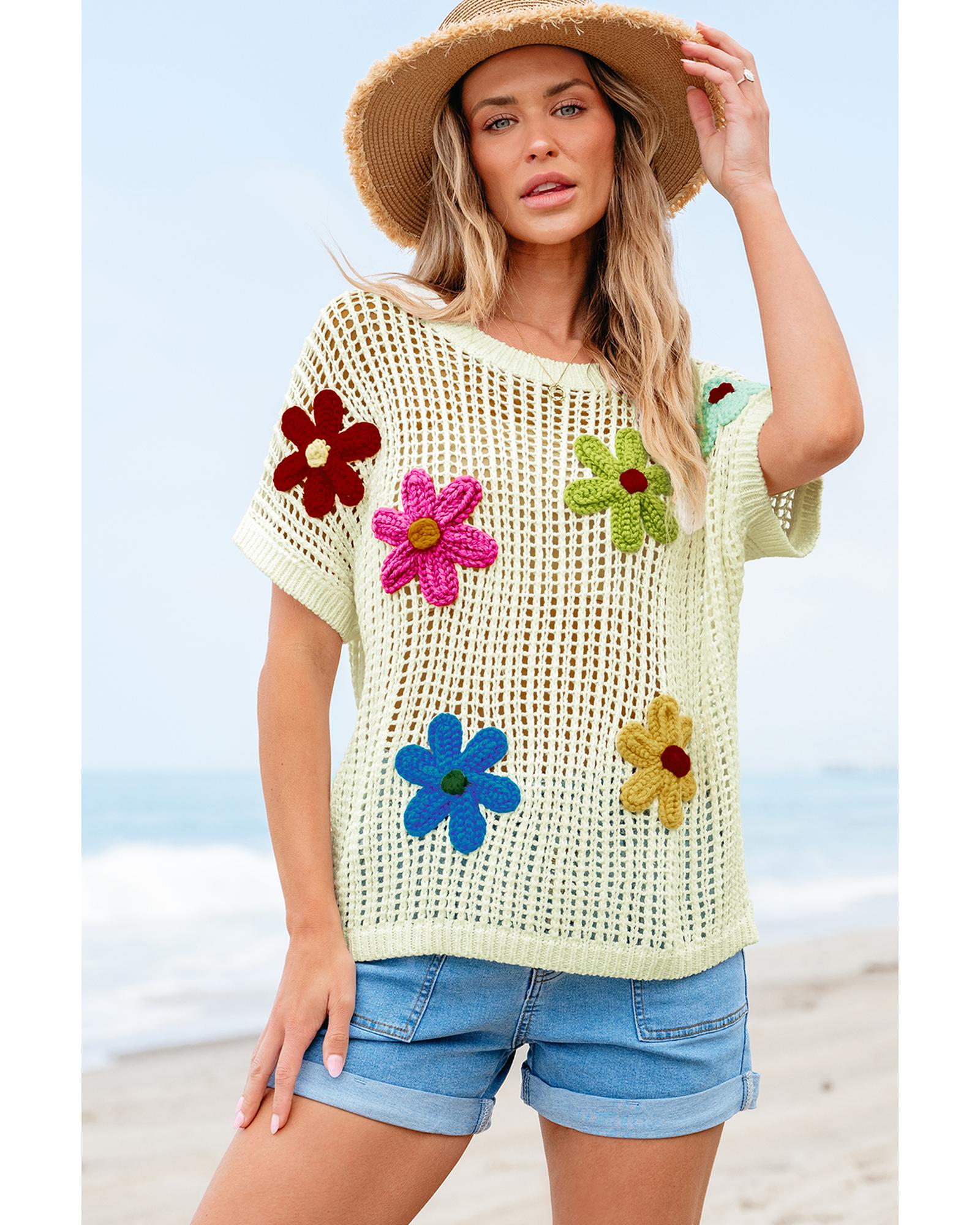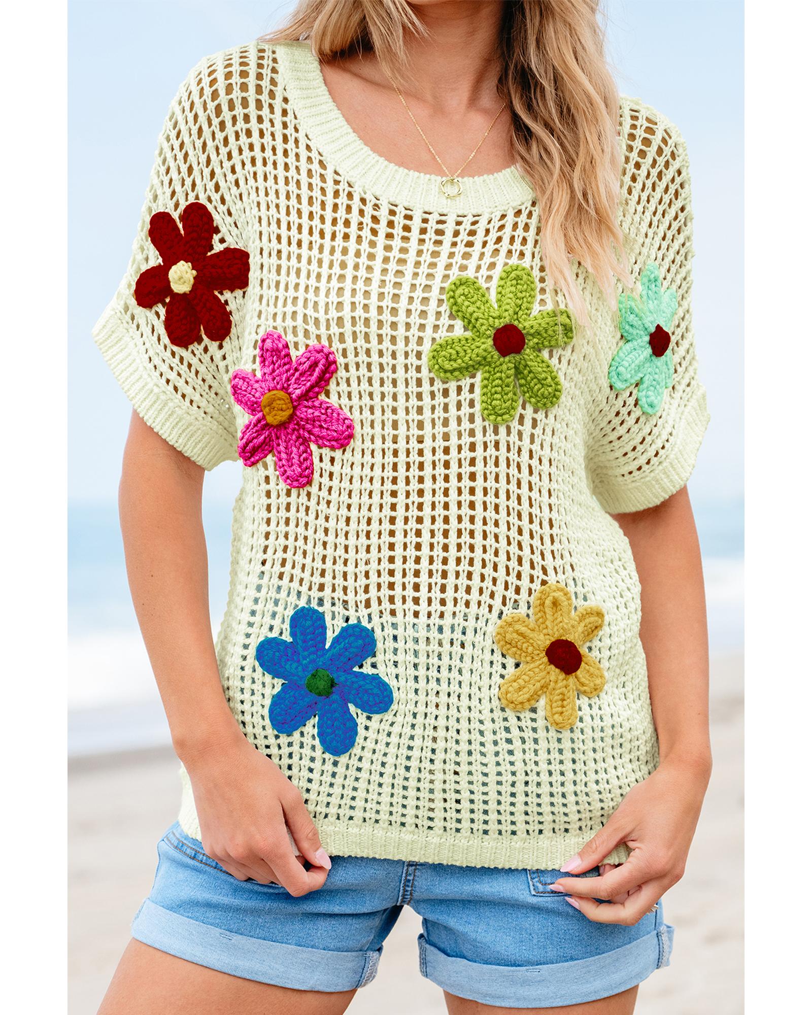 This white crochet flower hollow-out sweater T-shirt combines trendy design with a comfortable fit. It features intricate crochet flower details and a hollow-out pattern, making it a stylish addition to any wardrobe. Crafted with high-quality materials, it offers both elegance and durability for everyday wear.