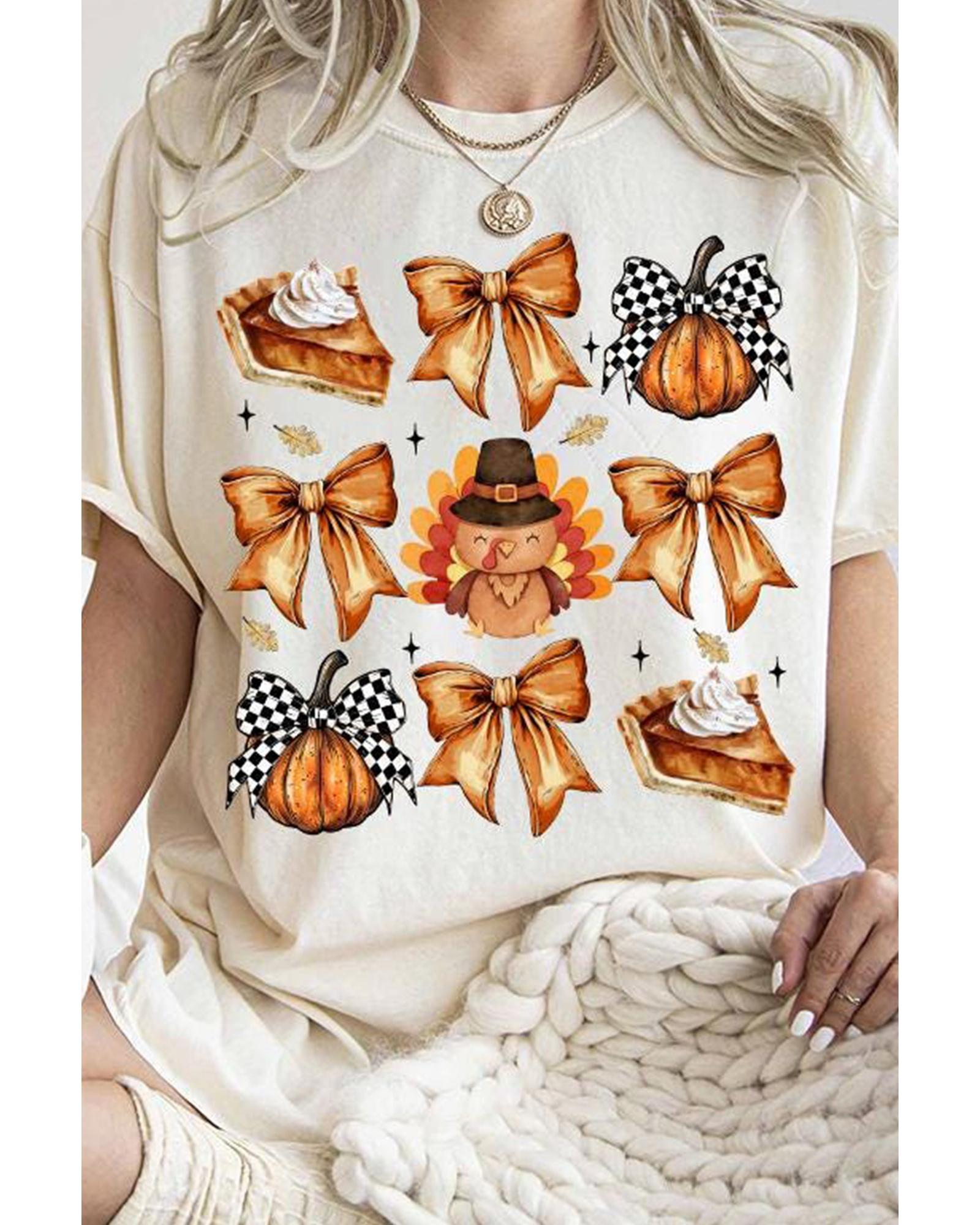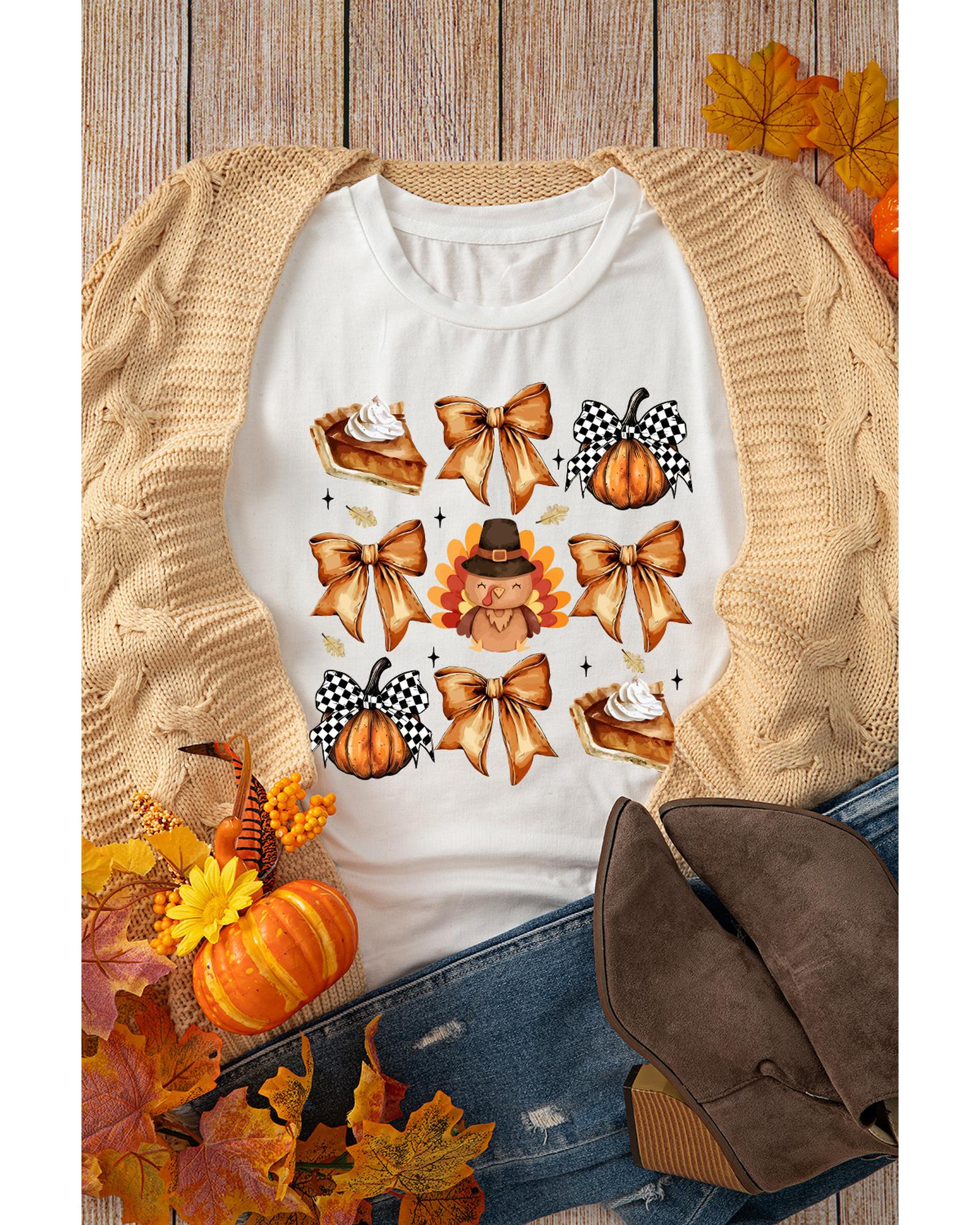 White Cute Bowknot Tanksgiving Graphic Crewneck T Shirt – M