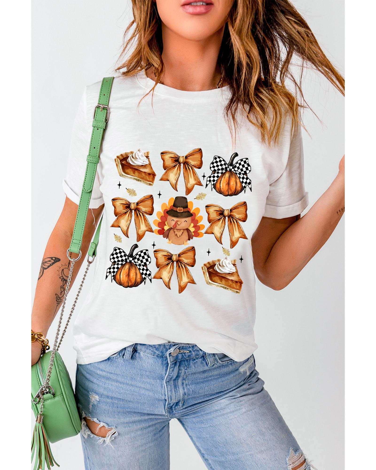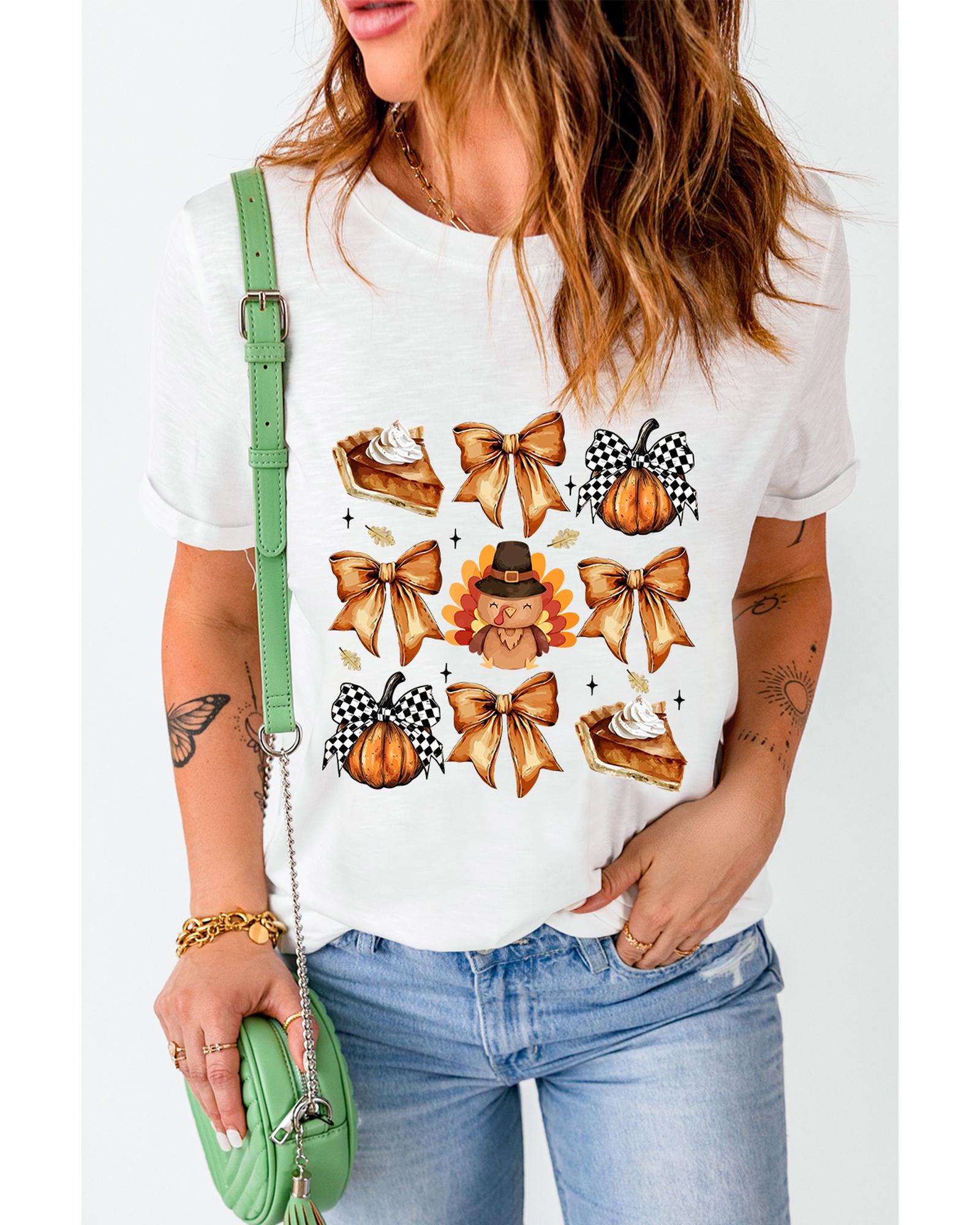White Cute Bowknot Tanksgiving Graphic Crewneck T Shirt – XL