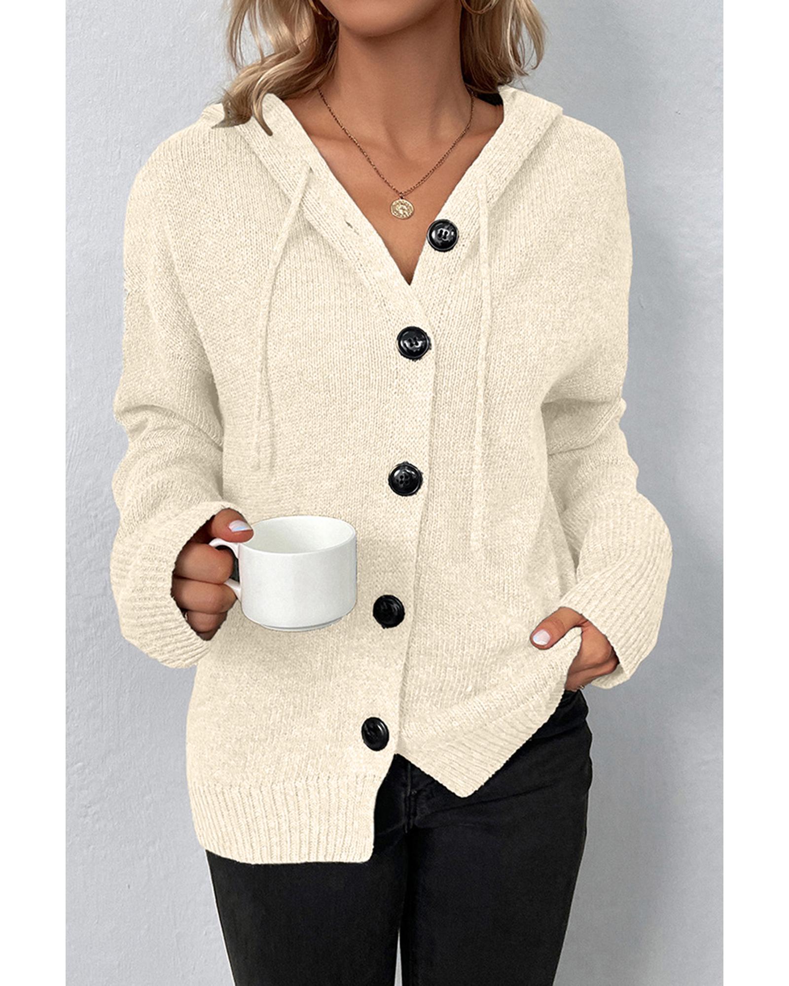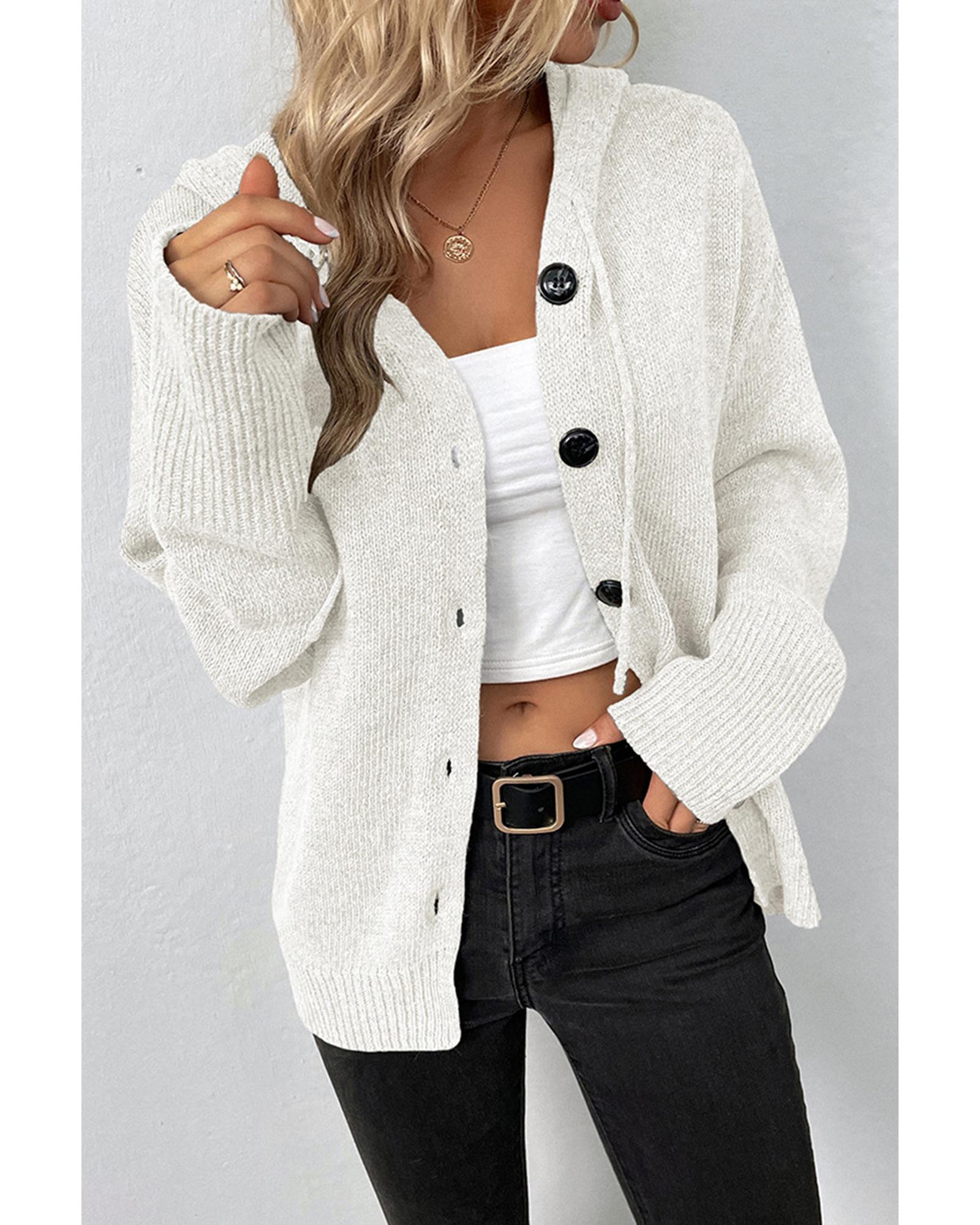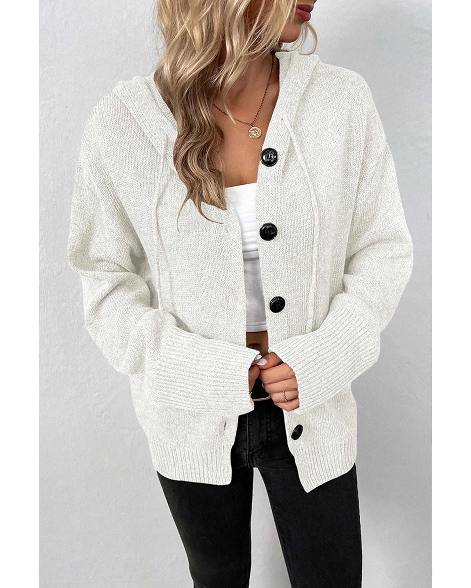 • 1 x White Drawstring Hooded Button Up Drop Shoulder Sweater Cardigan