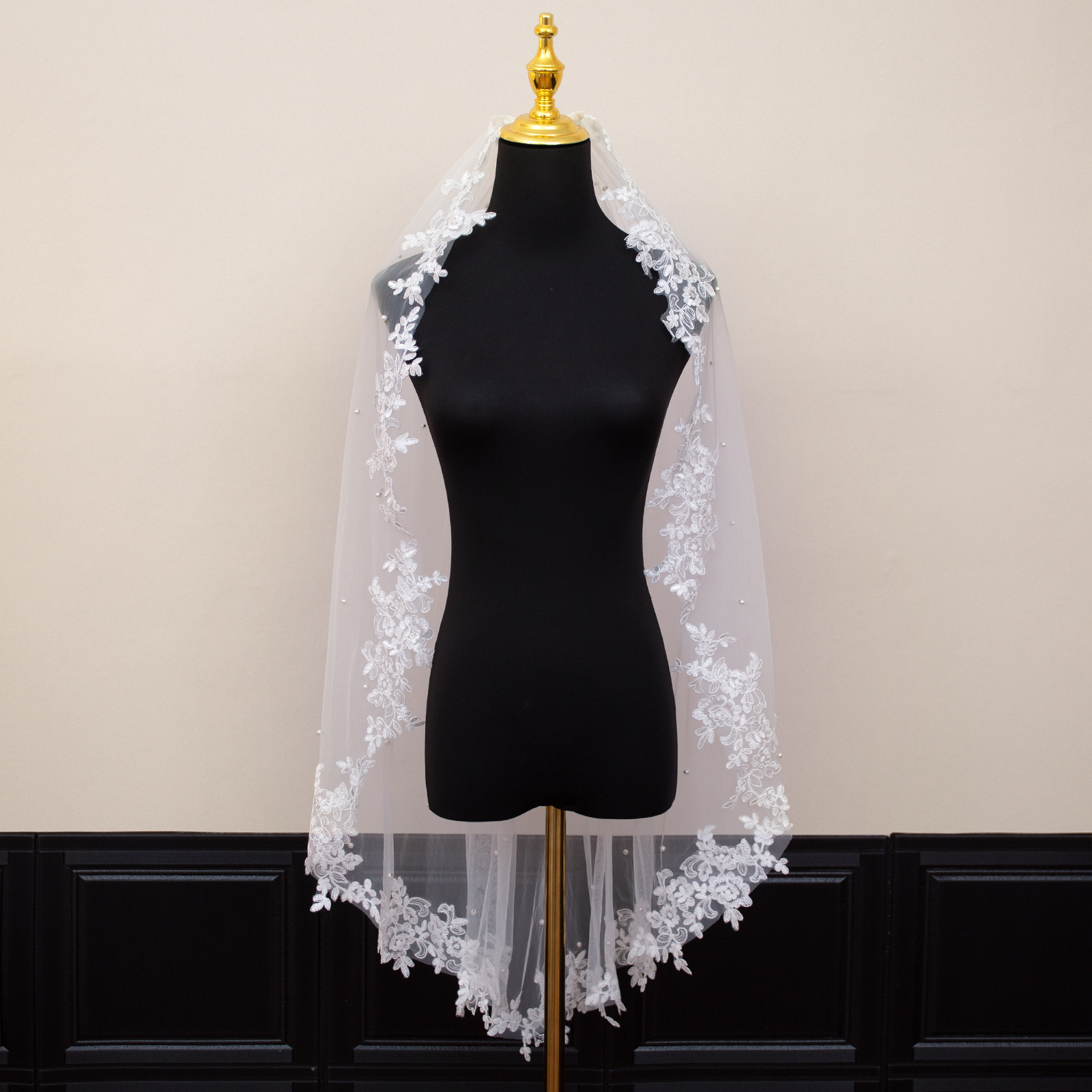 - Material: Soft bridal tulle, imitation pearls, lace applique