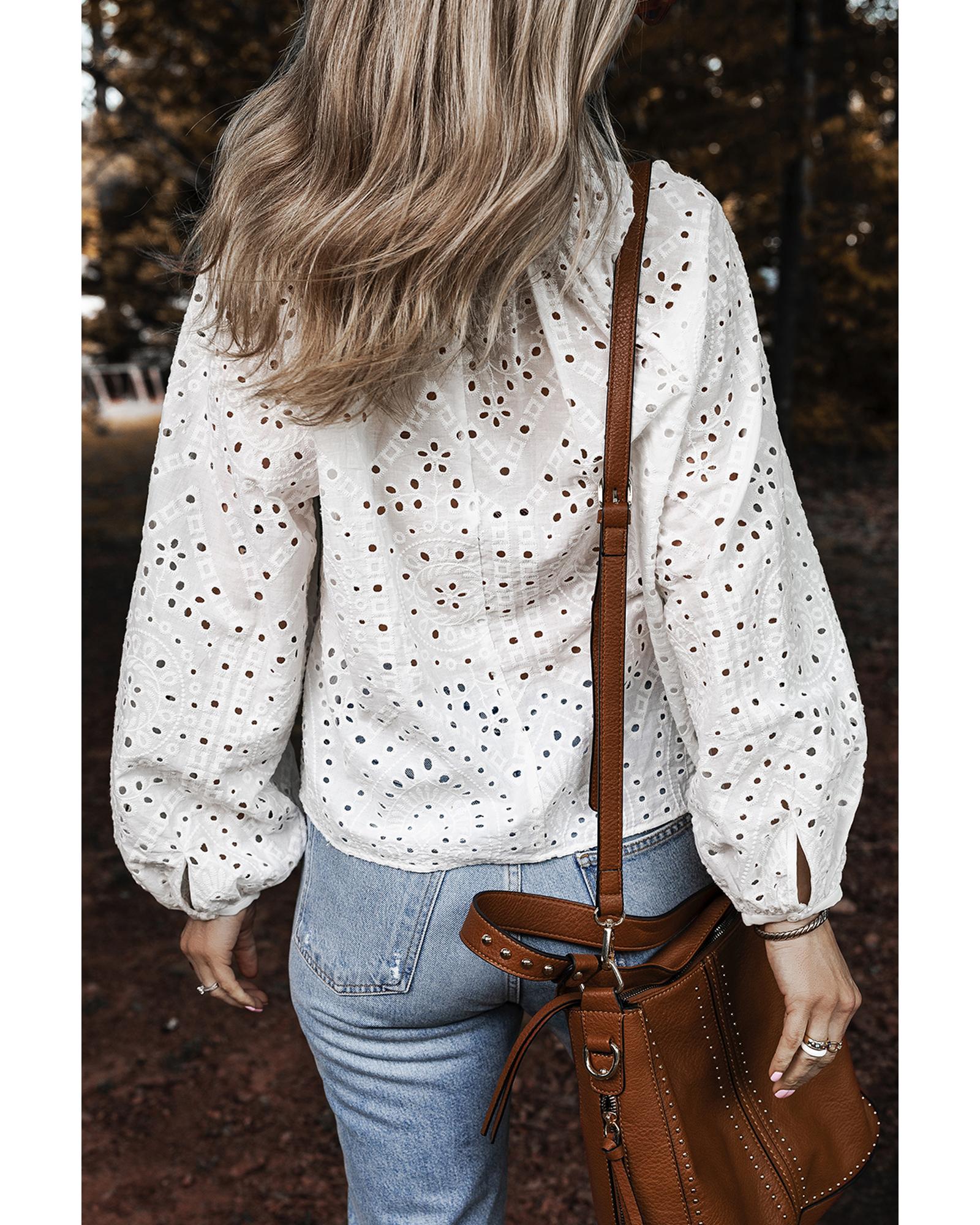 - 1 x Eyelet Embroidered Puff Sleeve V Neck Blouse