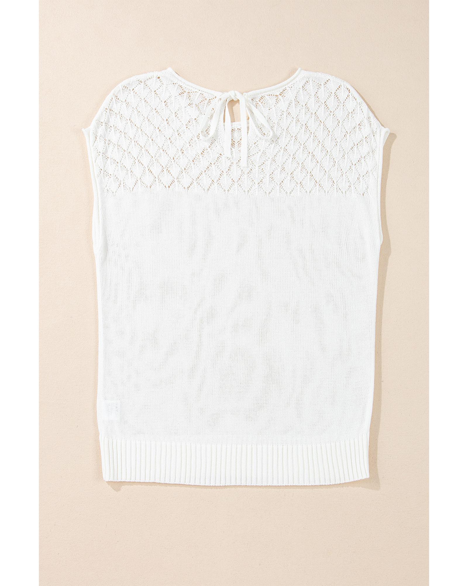 White Eyelet Knit Tied Back Short Sleeve Sweater – 2XL