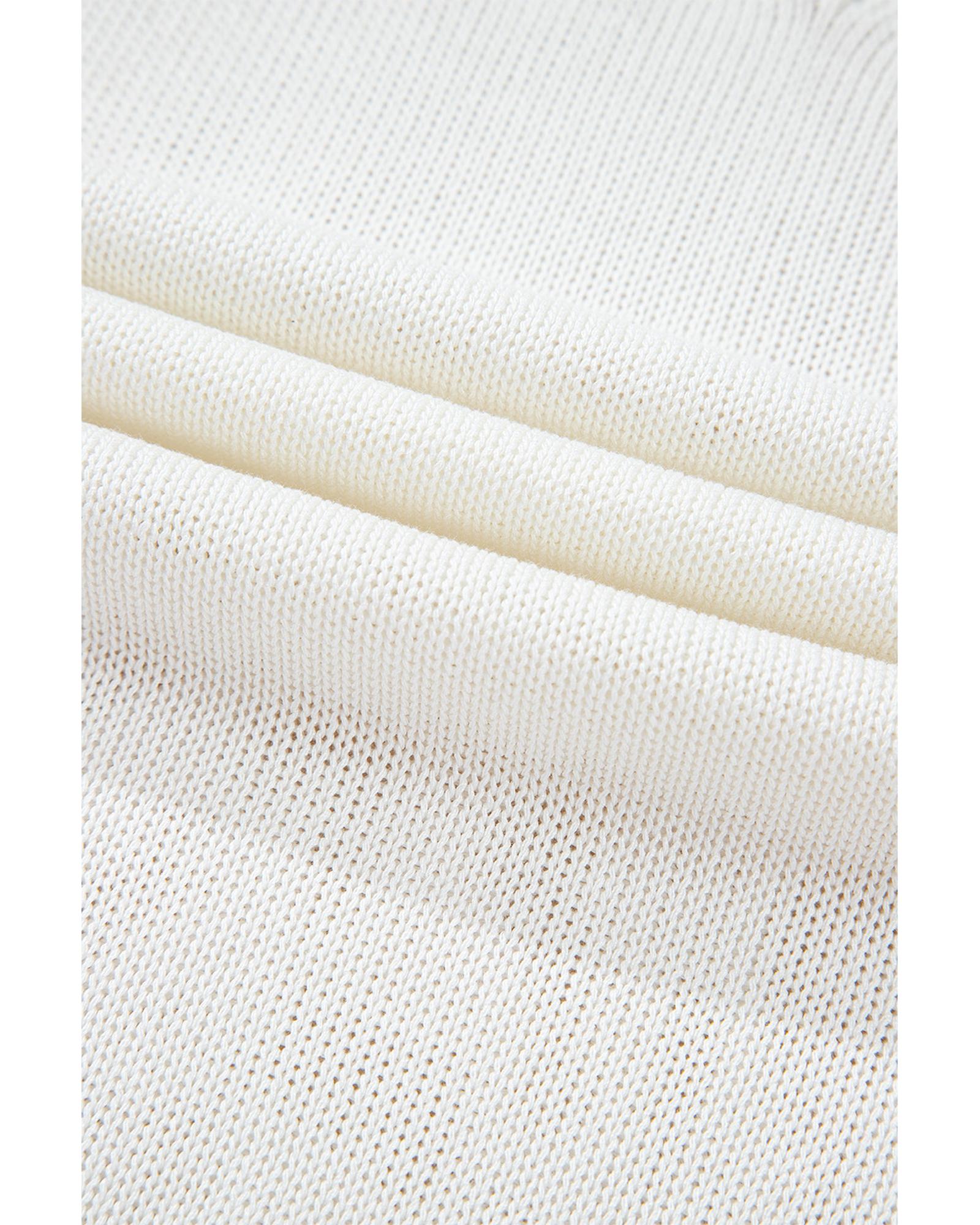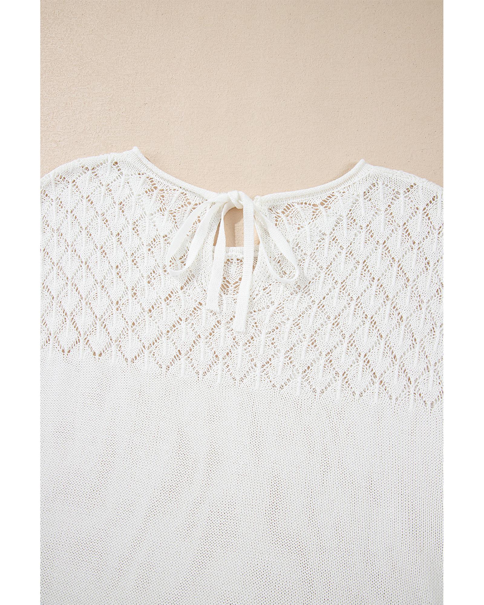 White Eyelet Knit Tied Back Short Sleeve Sweater – S