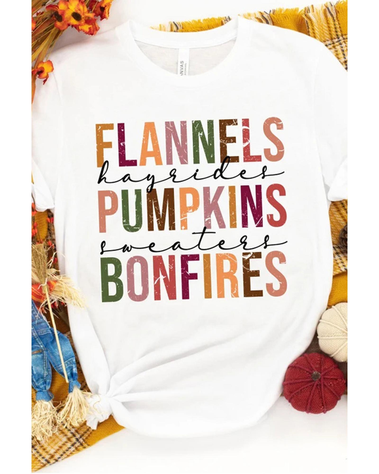 White FLANNELS PUMPKINS BONFIRES Crewneck Graphic Tee – 2XL