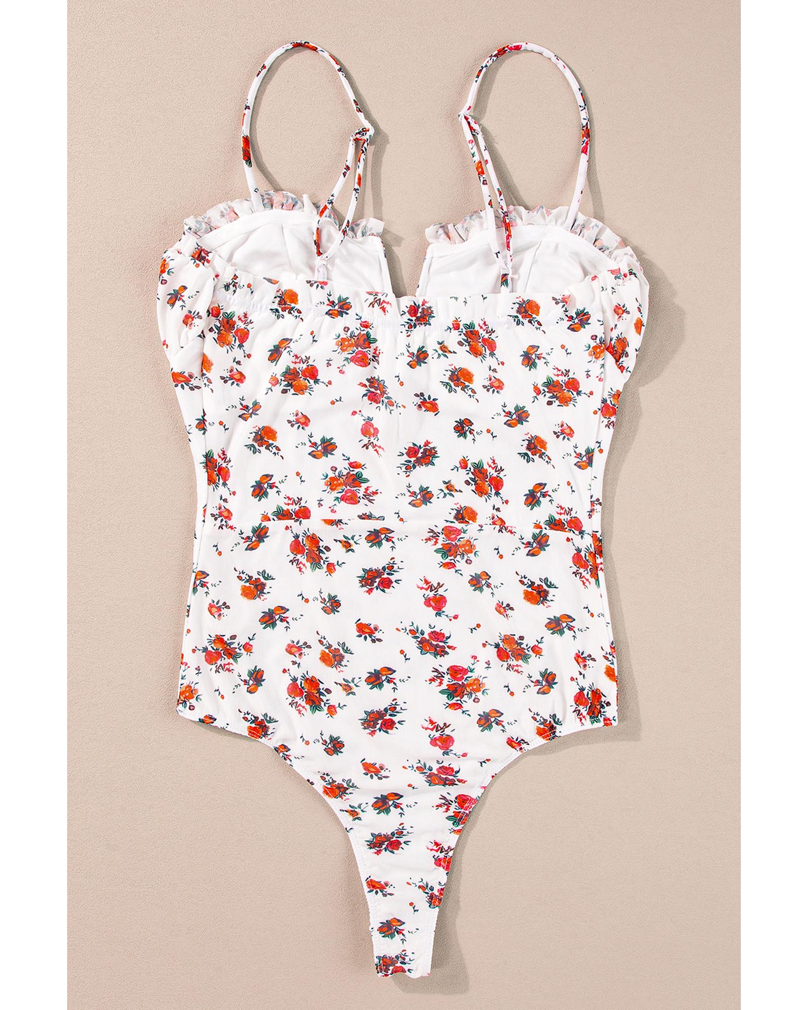 White Floral V Cut Frilled Trim Spaghetti Straps Bodysuit – XL