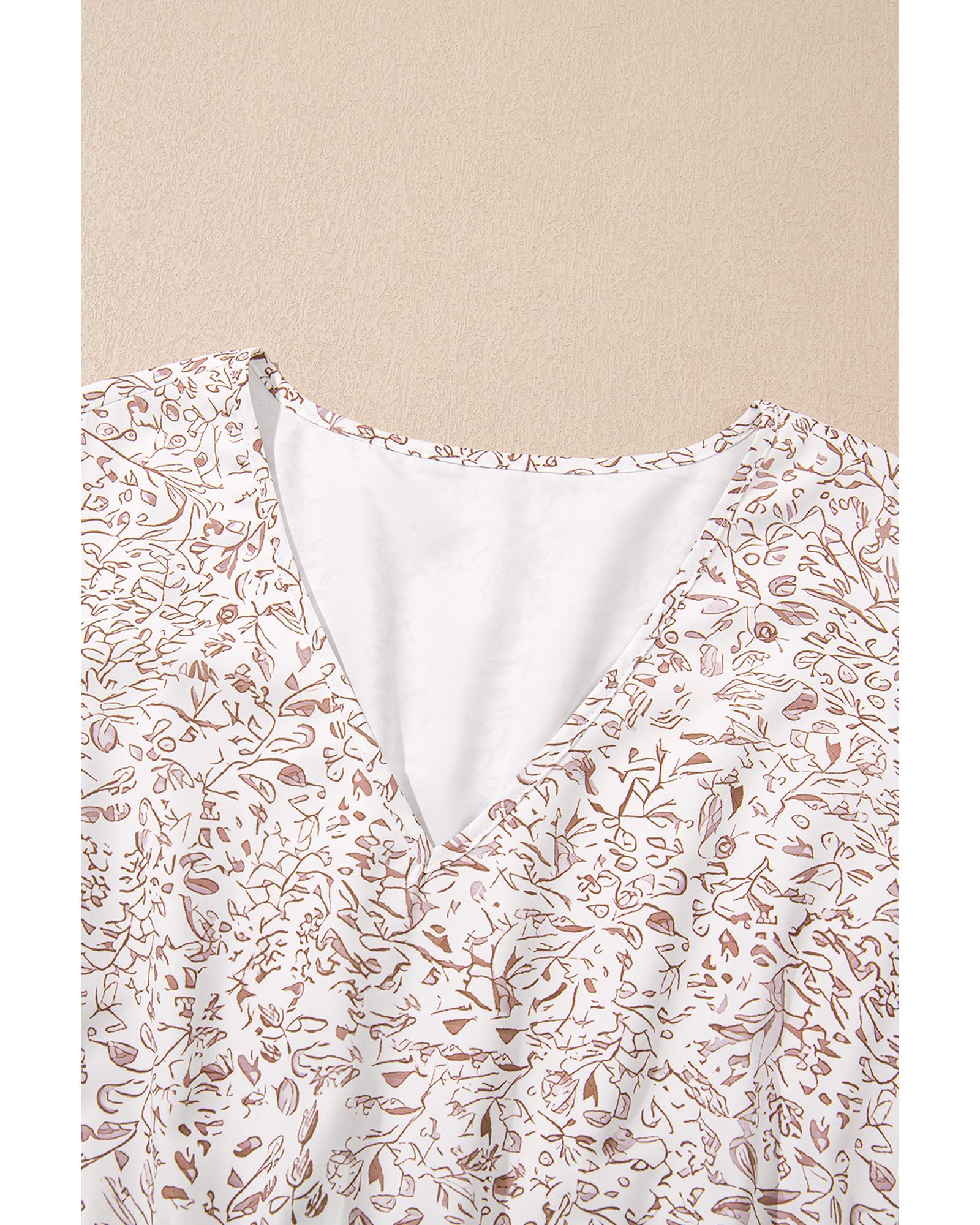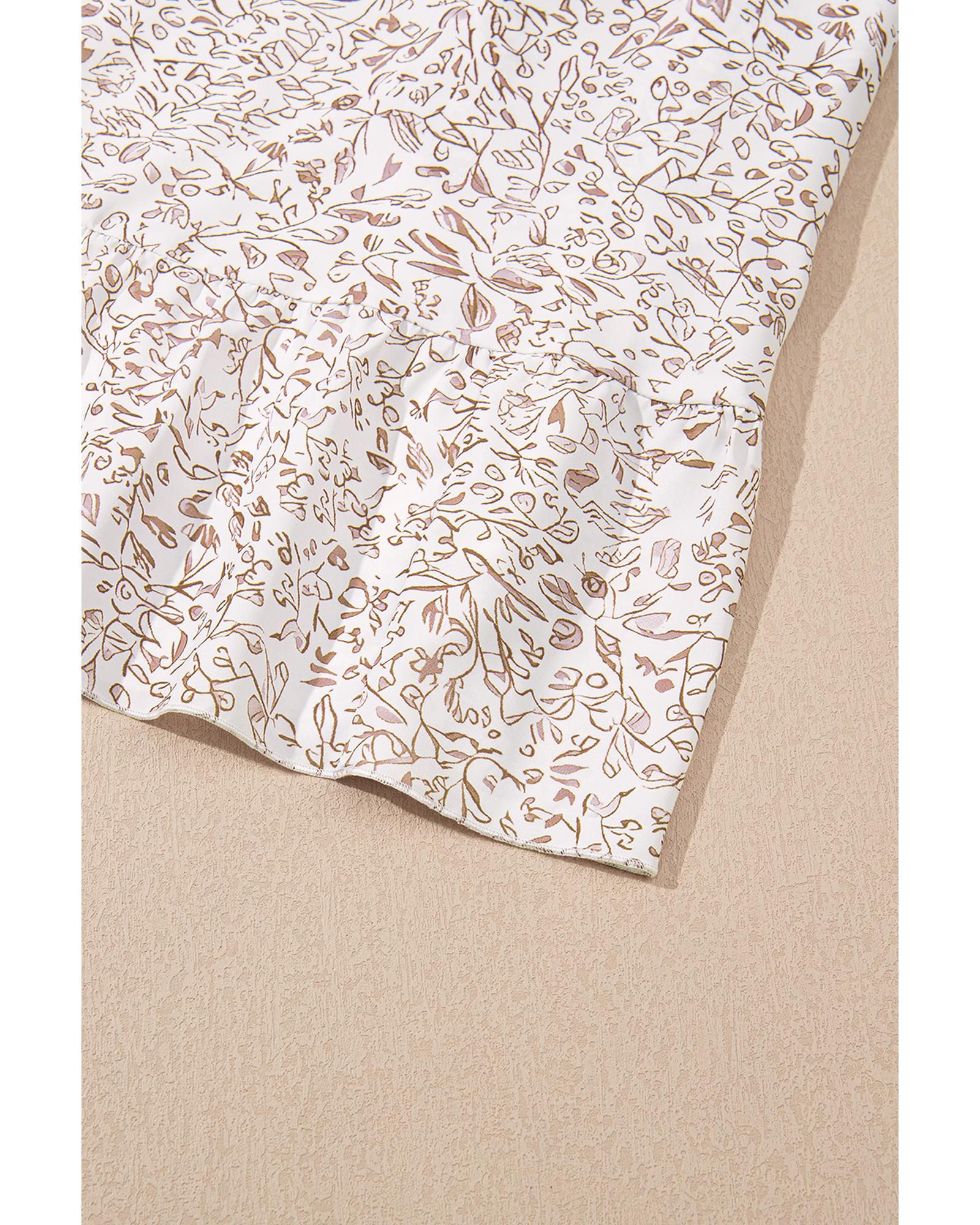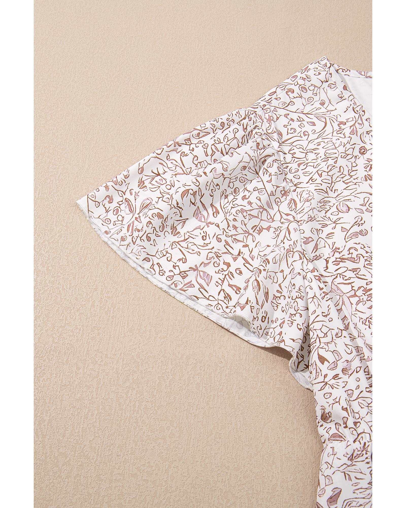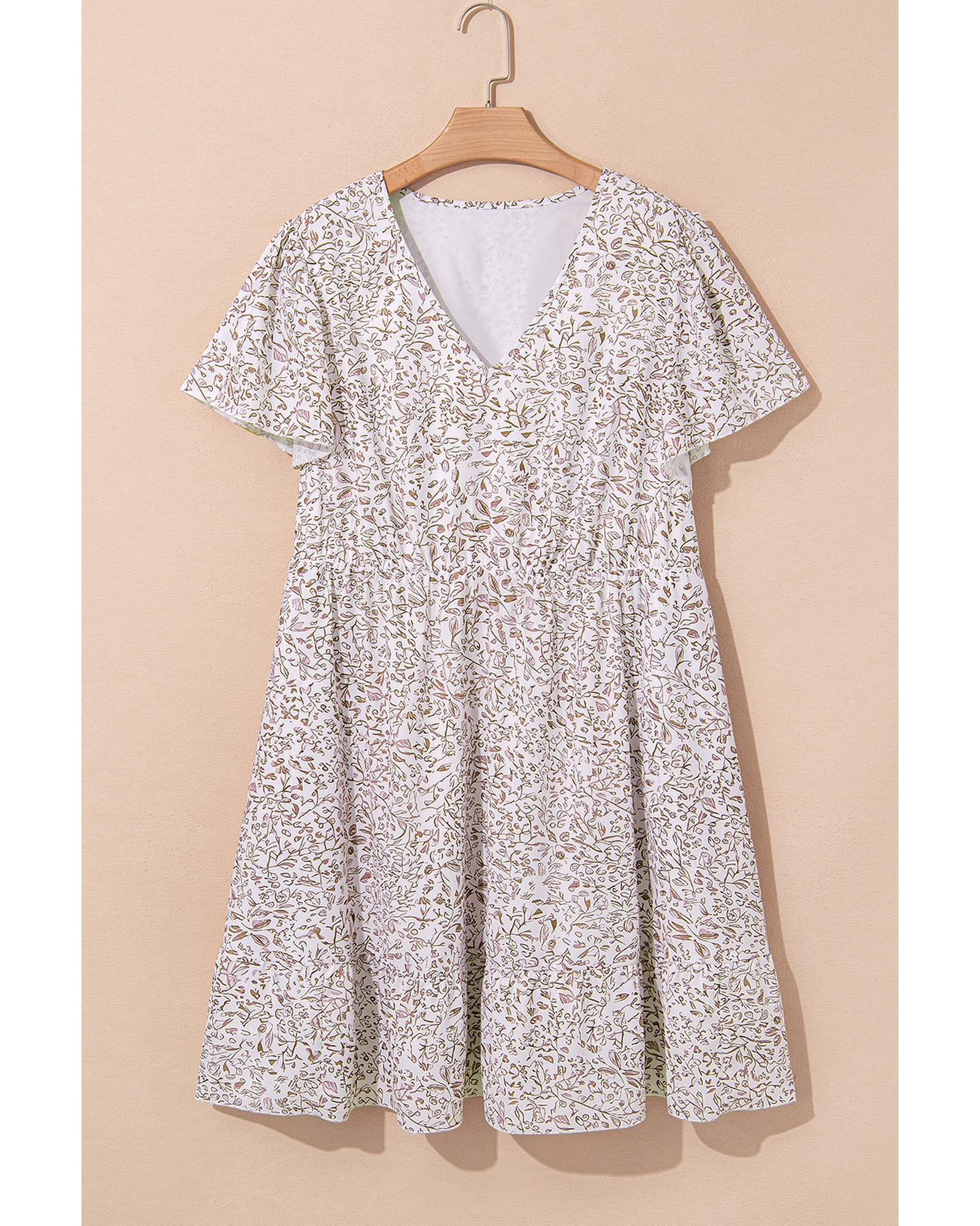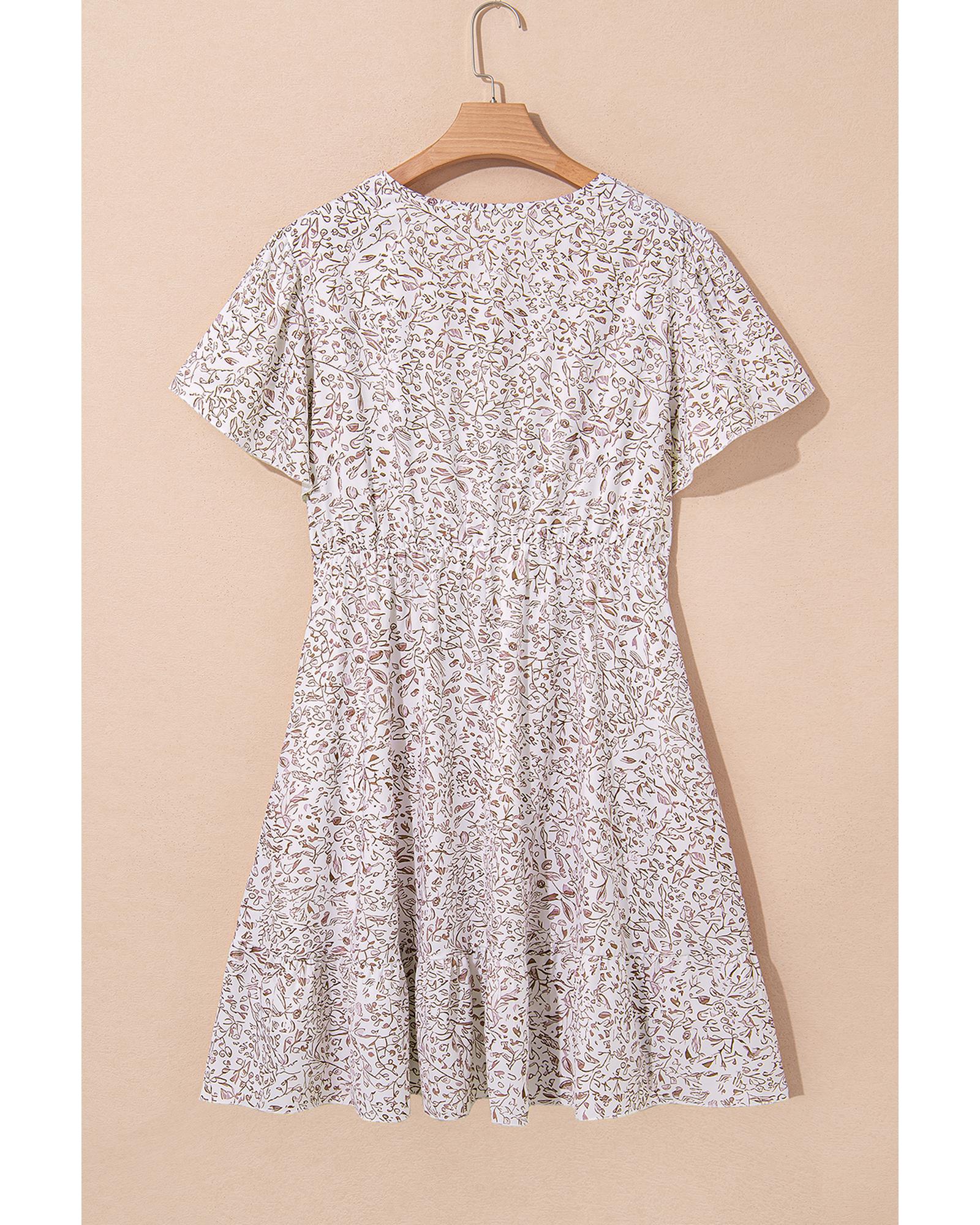 This white floral dress features a flattering V neckline and ruffled short sleeves, combining elegance with comfort. Its high waist design accentuates the figure, making it suitable for a variety of occasions, from casual outings to special events.
