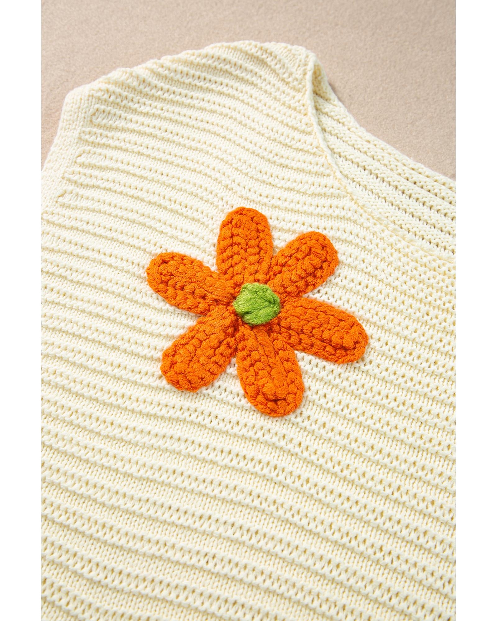 This crochet round neck knitted top features a stylish and comfortable design suitable for casual wear. Its vibrant floral crochet details add a playful and elegant touch, making it a versatile addition to your wardrobe. The top is designed to provide a fitted look while maintaining flexibility and comfort, perfect for layering or pairing with casual bottoms.