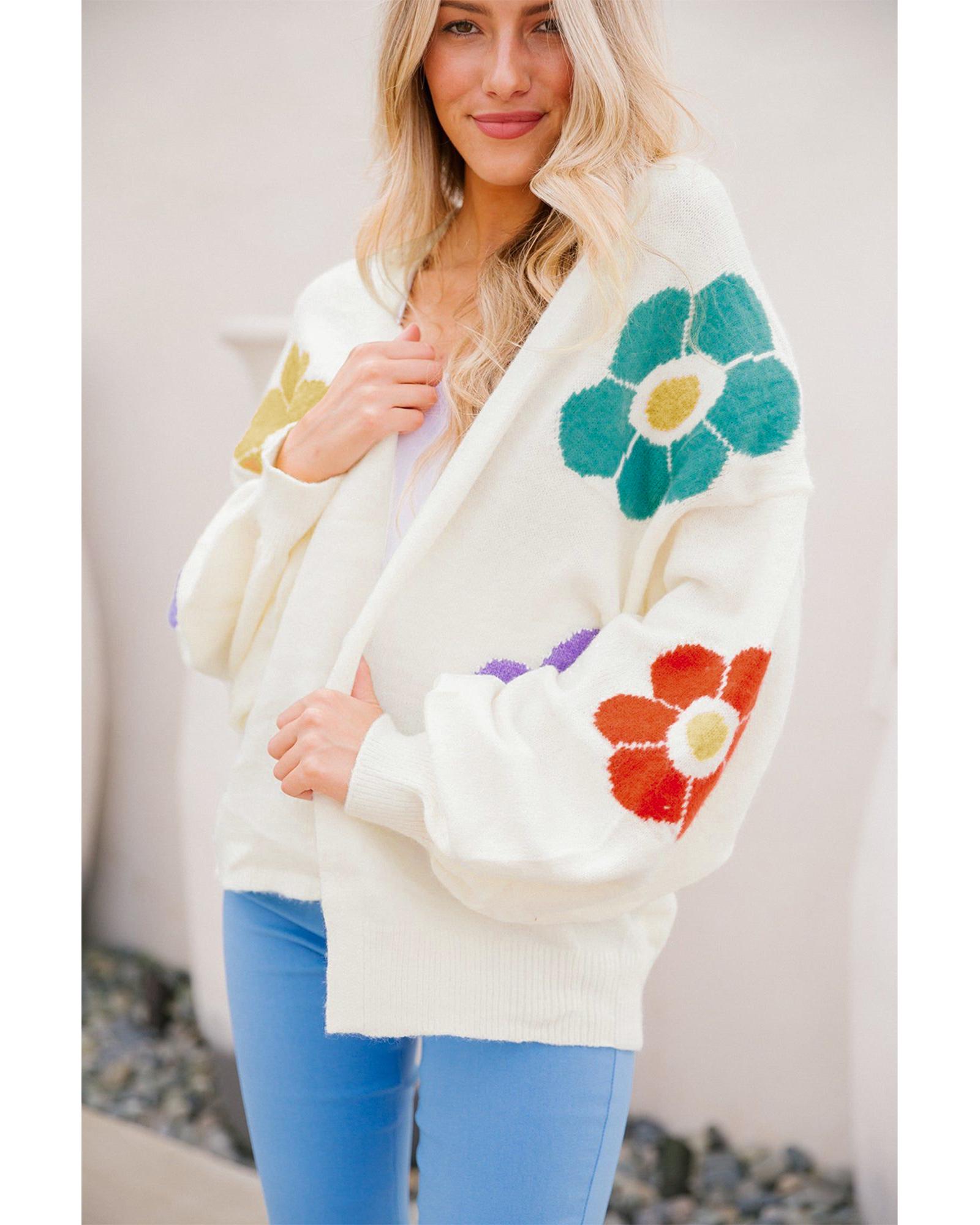 White Flower Jacquared Bubble Sleeve Open Cardigan – XL