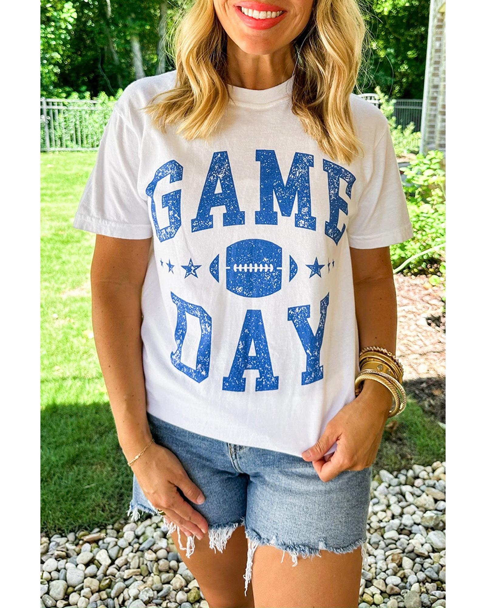 White GAME DAY Rugby Football Graphic Crewneck T Shirt – 2XL