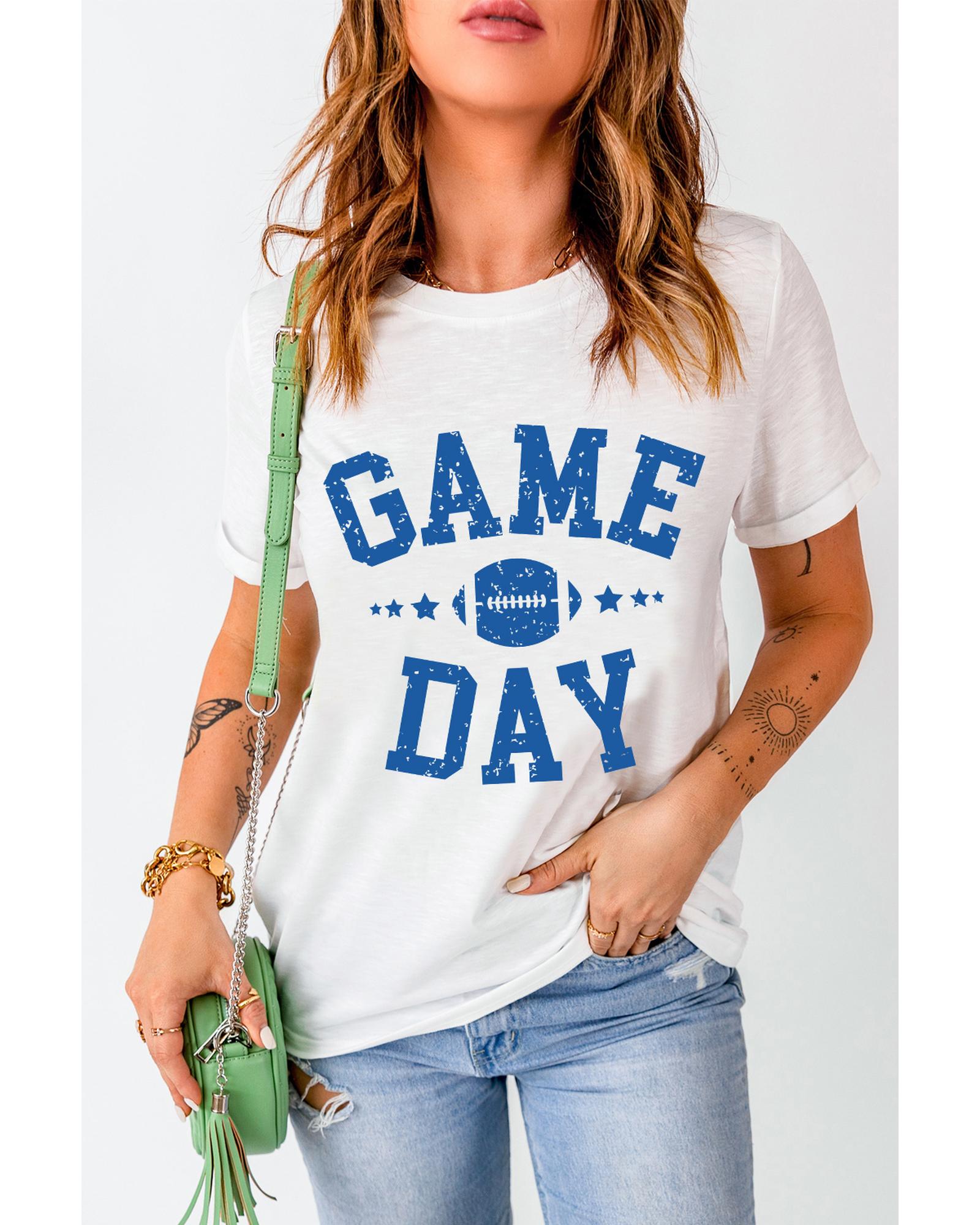 White GAME DAY Rugby Football Graphic Crewneck T Shirt – XL