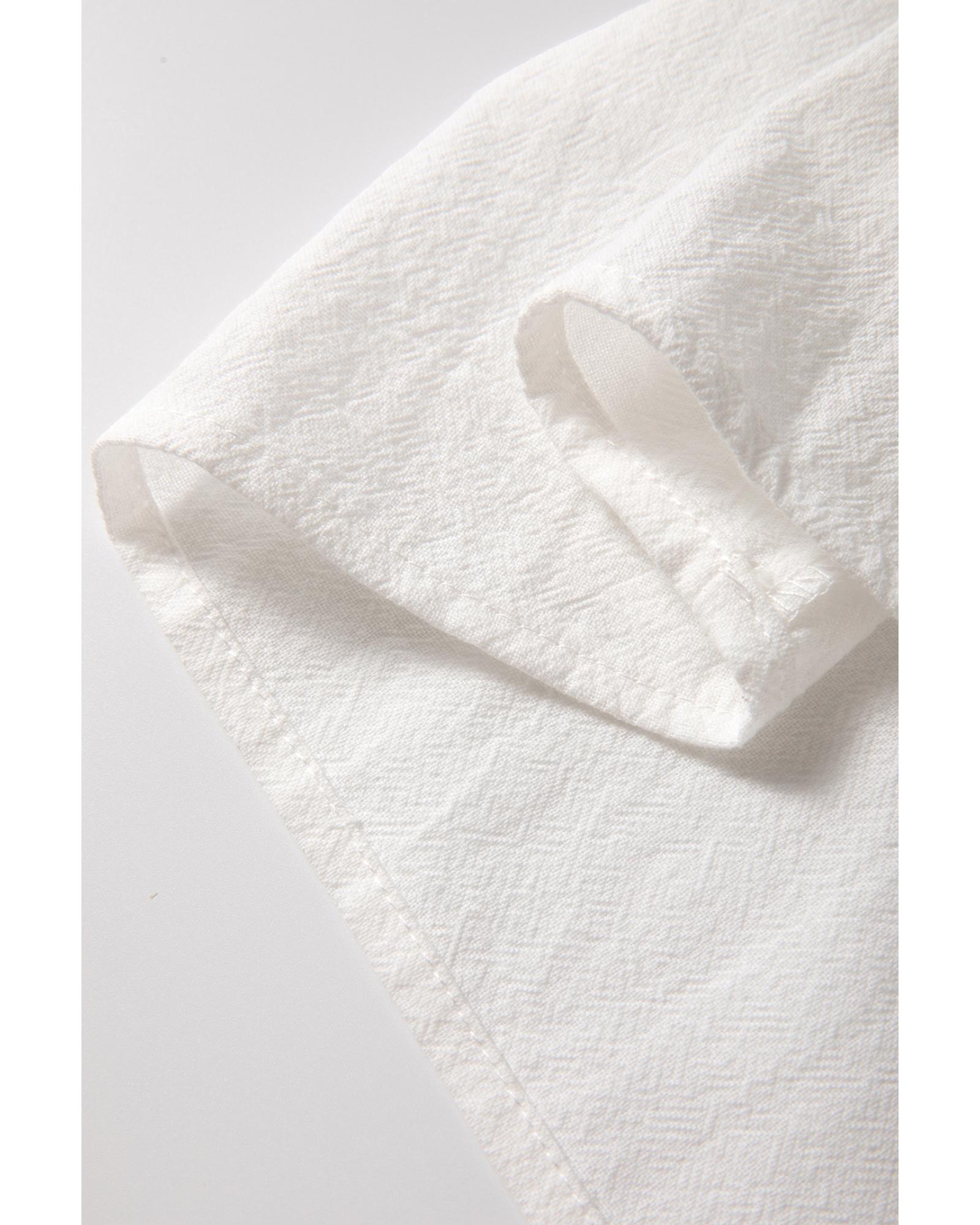 This white geometric embroidered long sleeve blouse features a stylish and comfortable design suitable for various occasions. Its intricate embroidery adds a unique and eye-catching detail, while the long sleeves provide coverage and warmth. The buttoned neckline enhances its refined appearance, and the loose silhouette offers a relaxed fit that balances chic and casual styles.