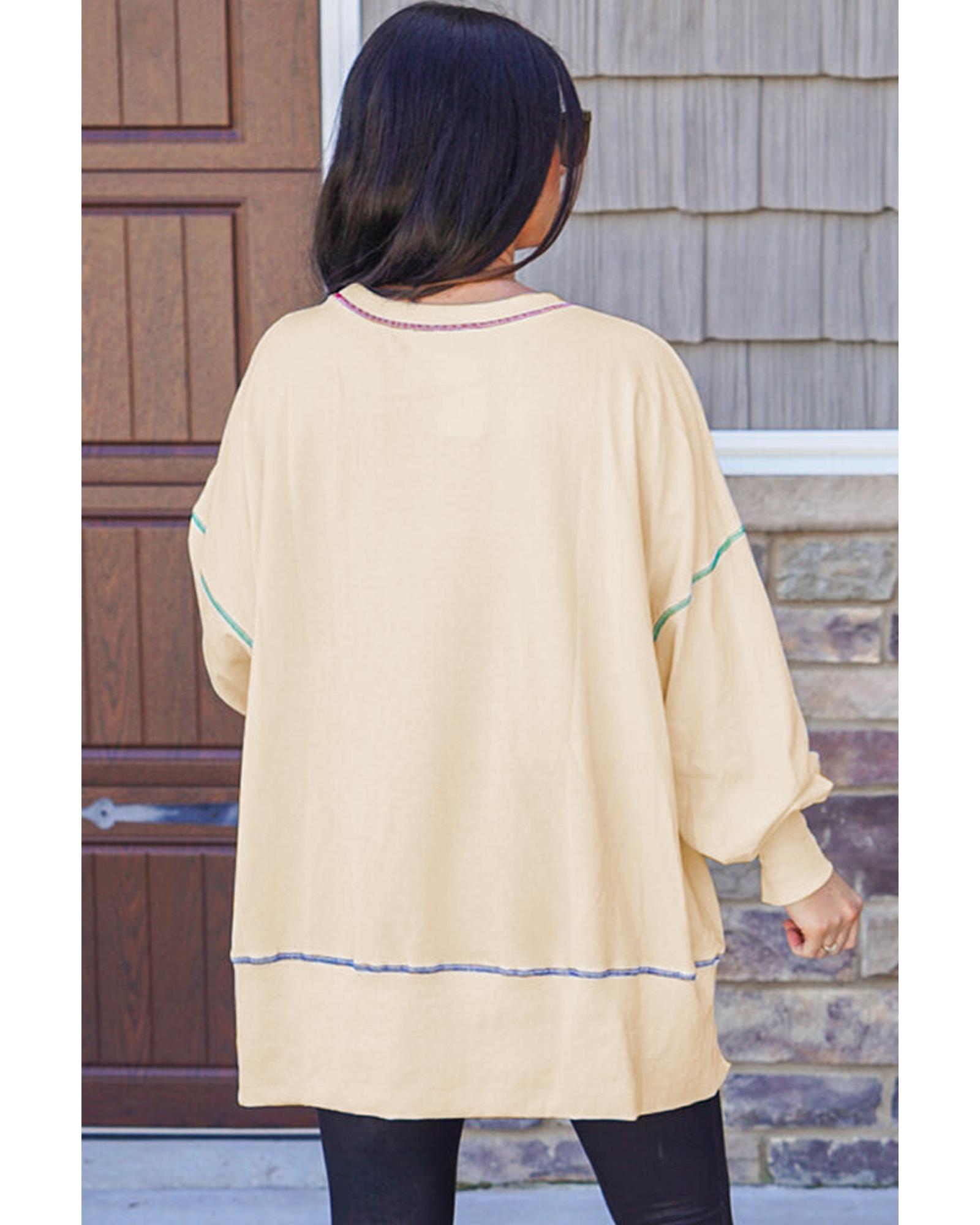 This sweatshirt features a stylish design with a high-low hem and a loose fit, offering both comfort and a trendy appearance. It is suitable for expressing gratitude and faith, making it ideal for festive gatherings and casual wear.