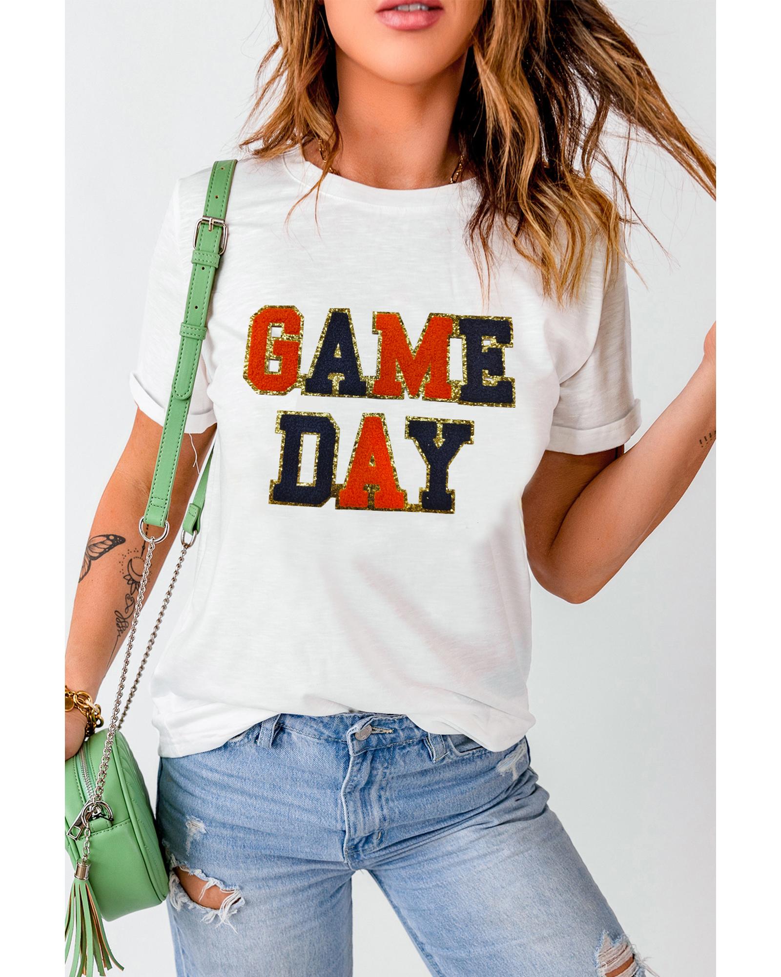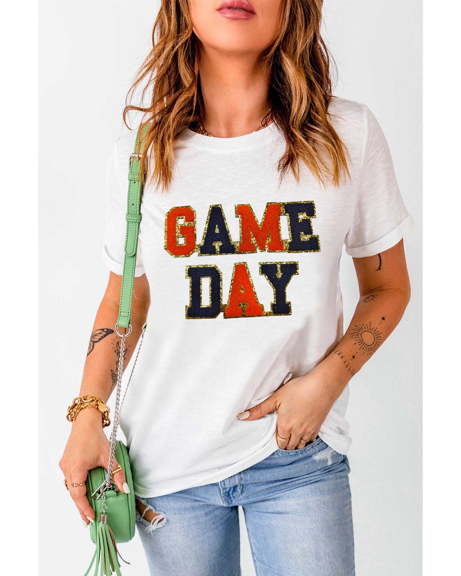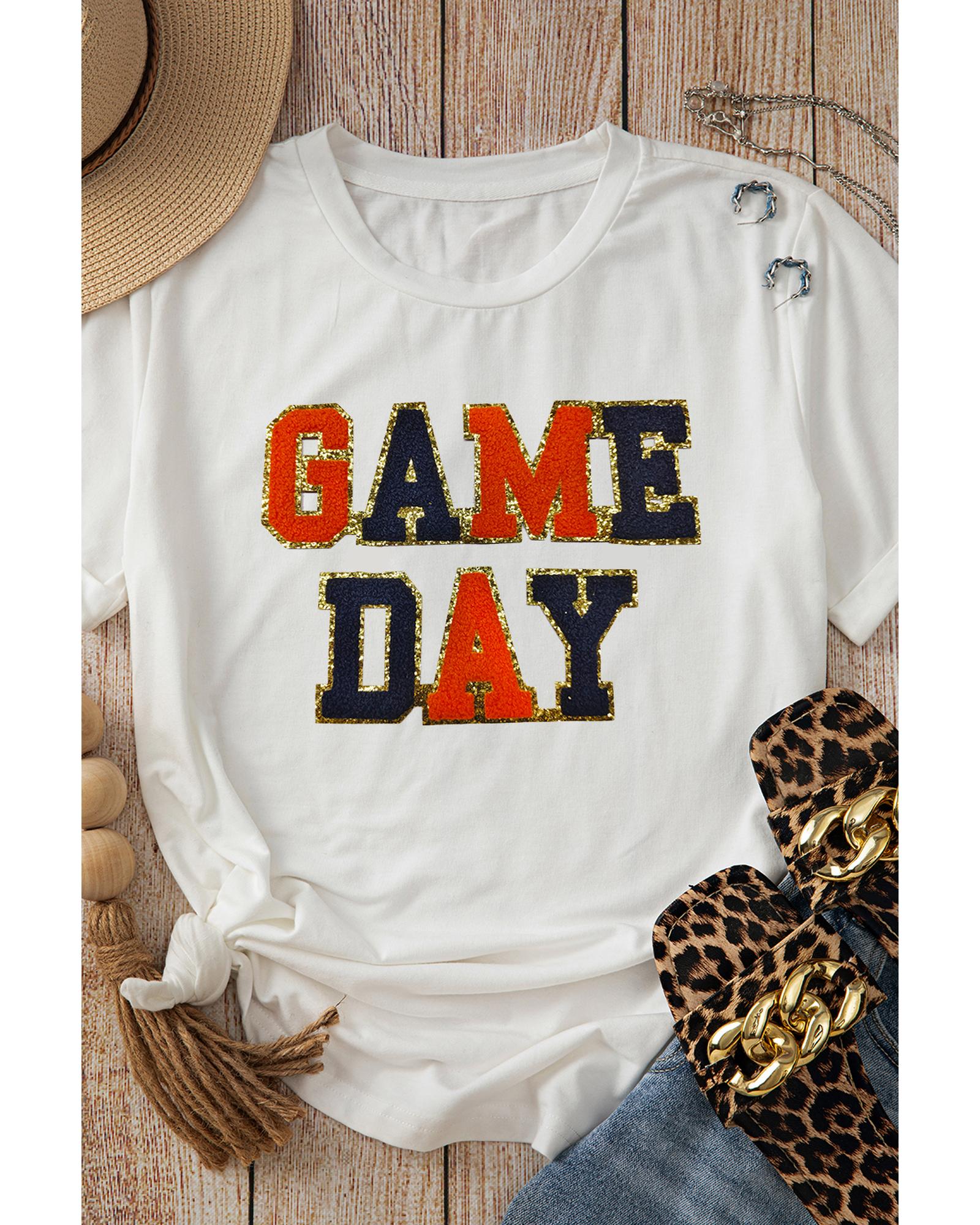 White Glitter GAME DAY Rugby Football Season Round Neck T Shirt – XL