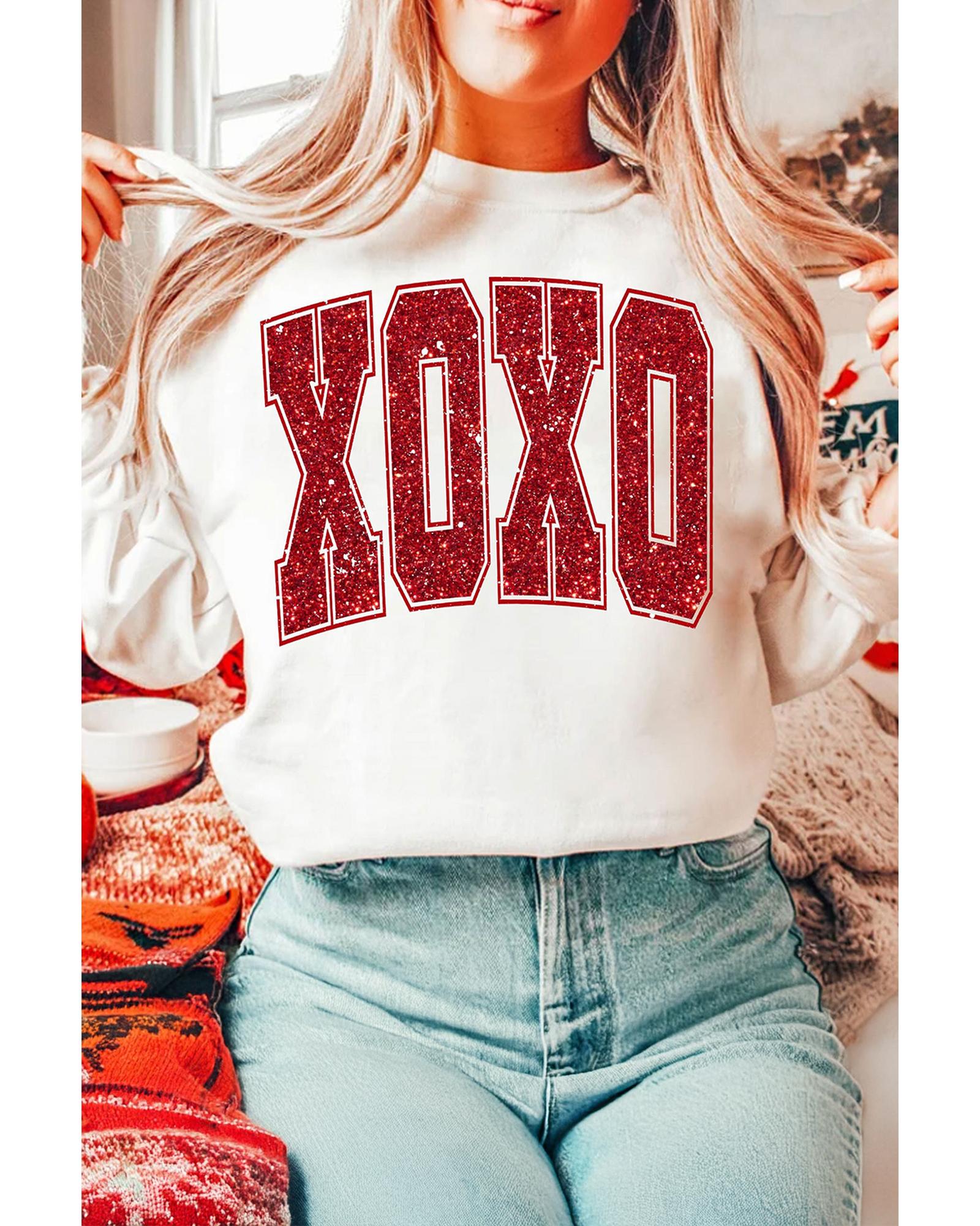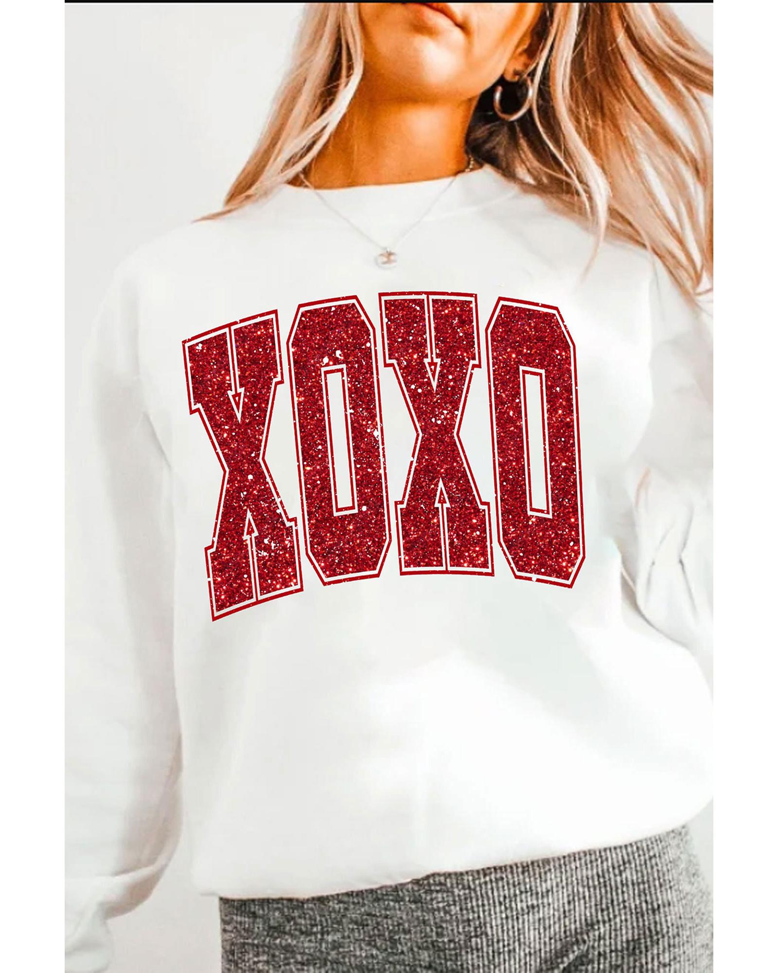 White Glitter XOXO Graphic Crewneck Valentines Pullover Sweatshirt – L