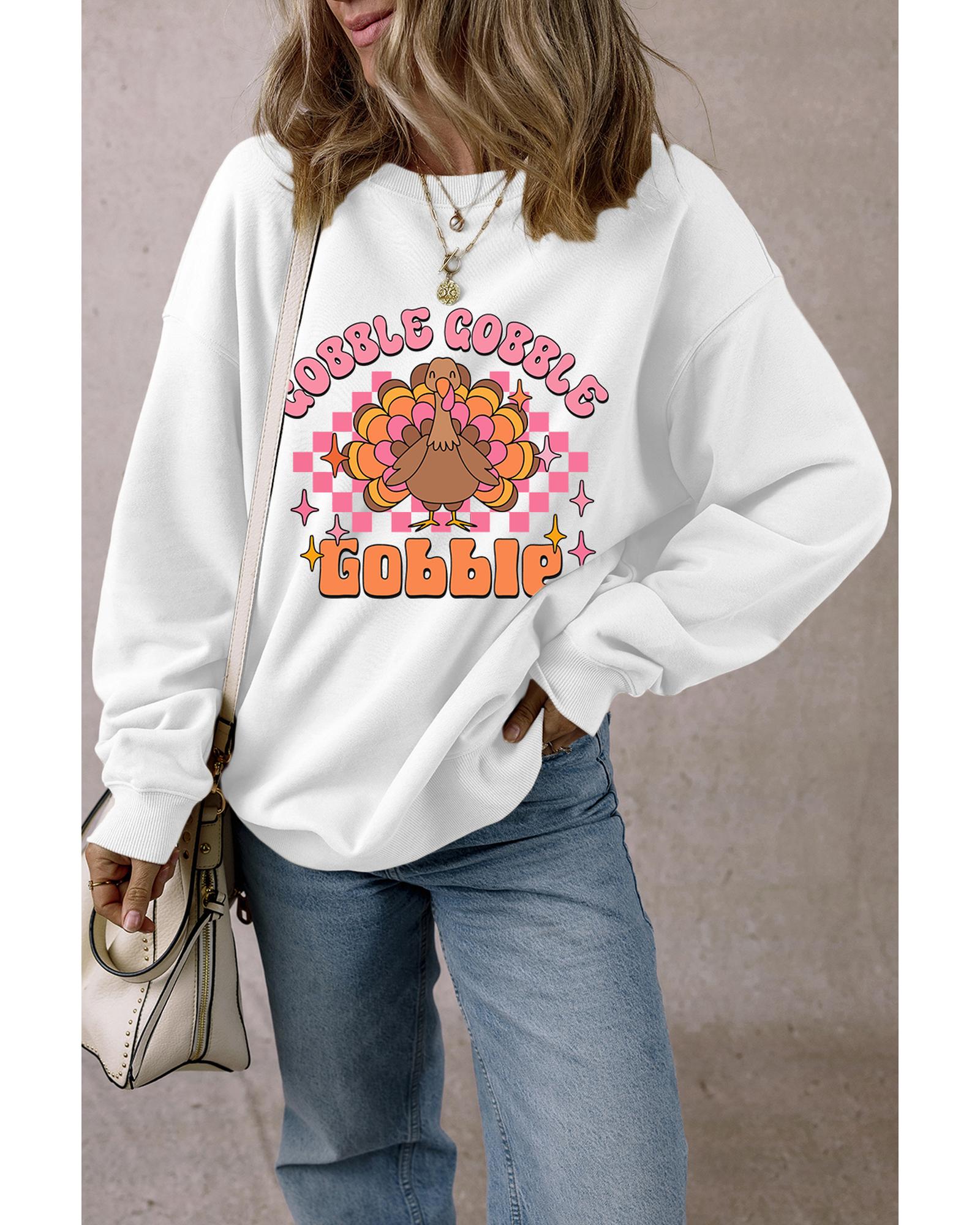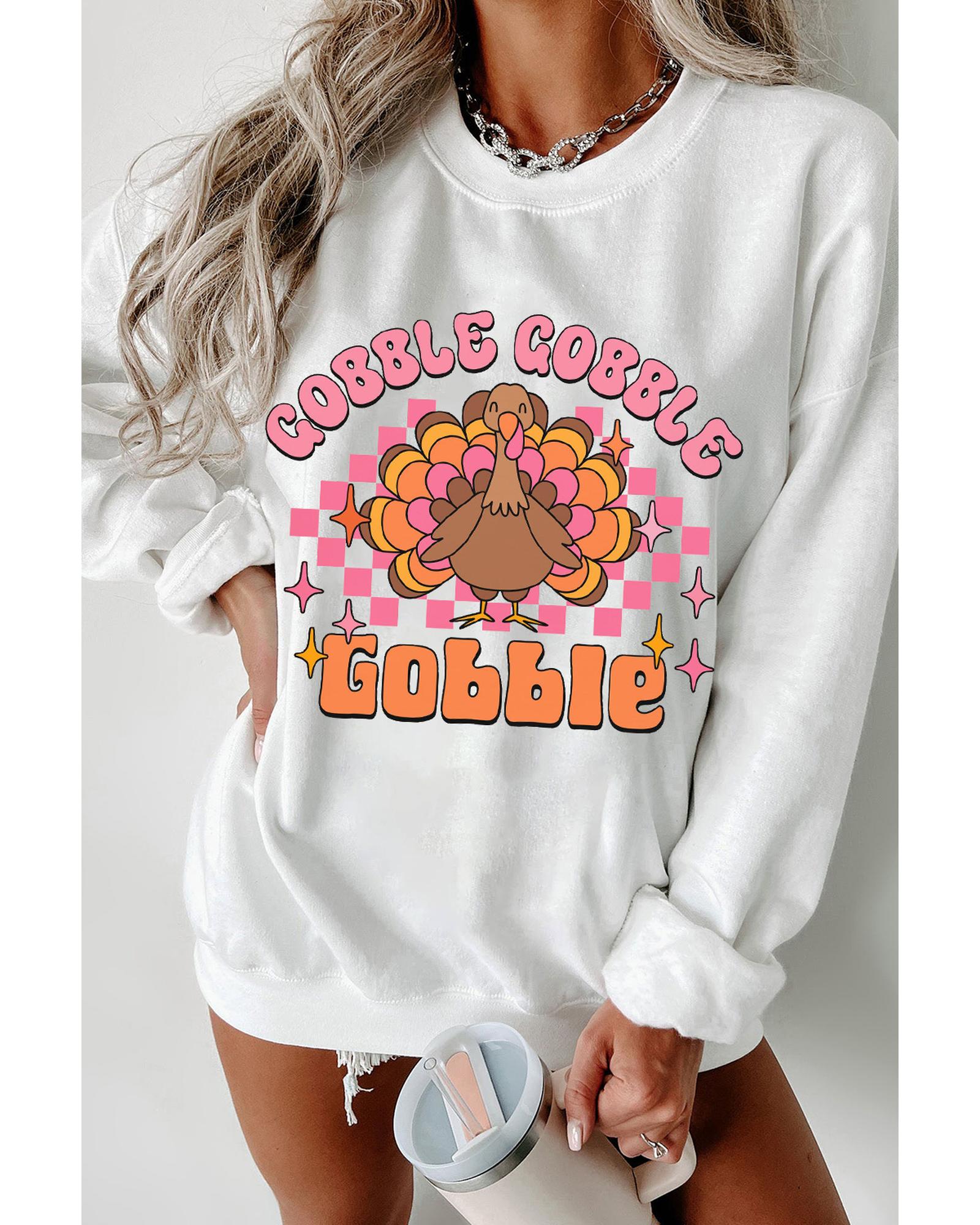 White Gobble Gobble Turkey Graphic Crewneck Thanksgiving Sweatshirt – XL