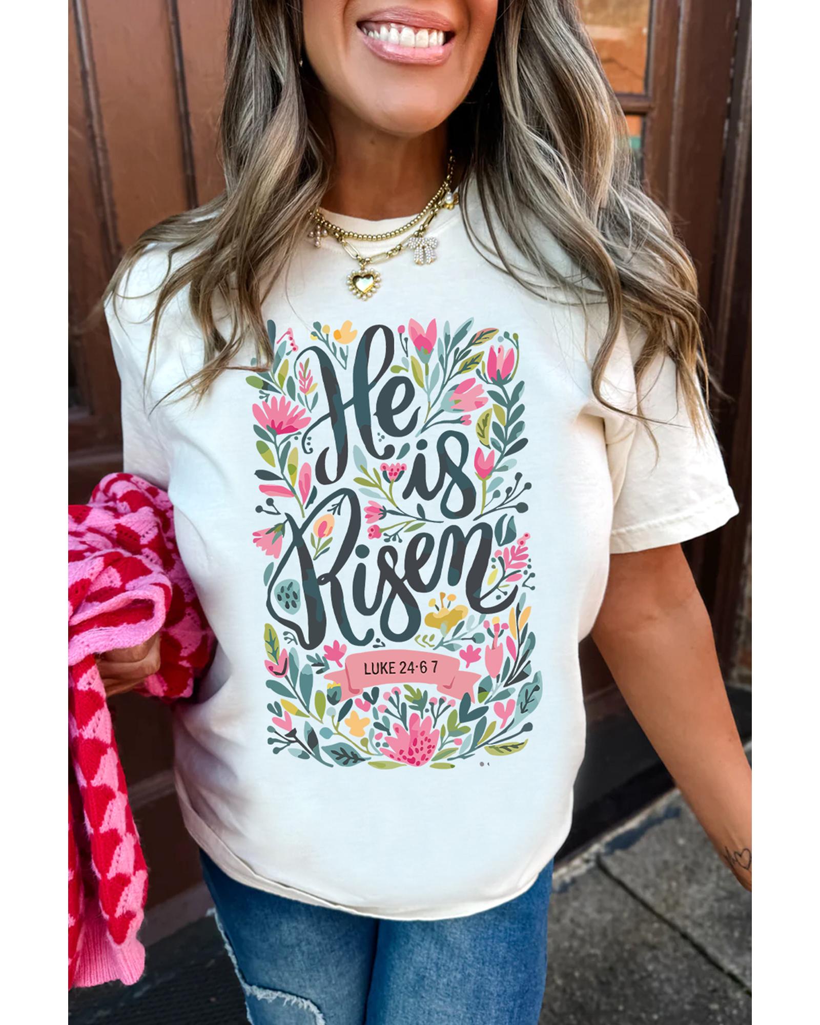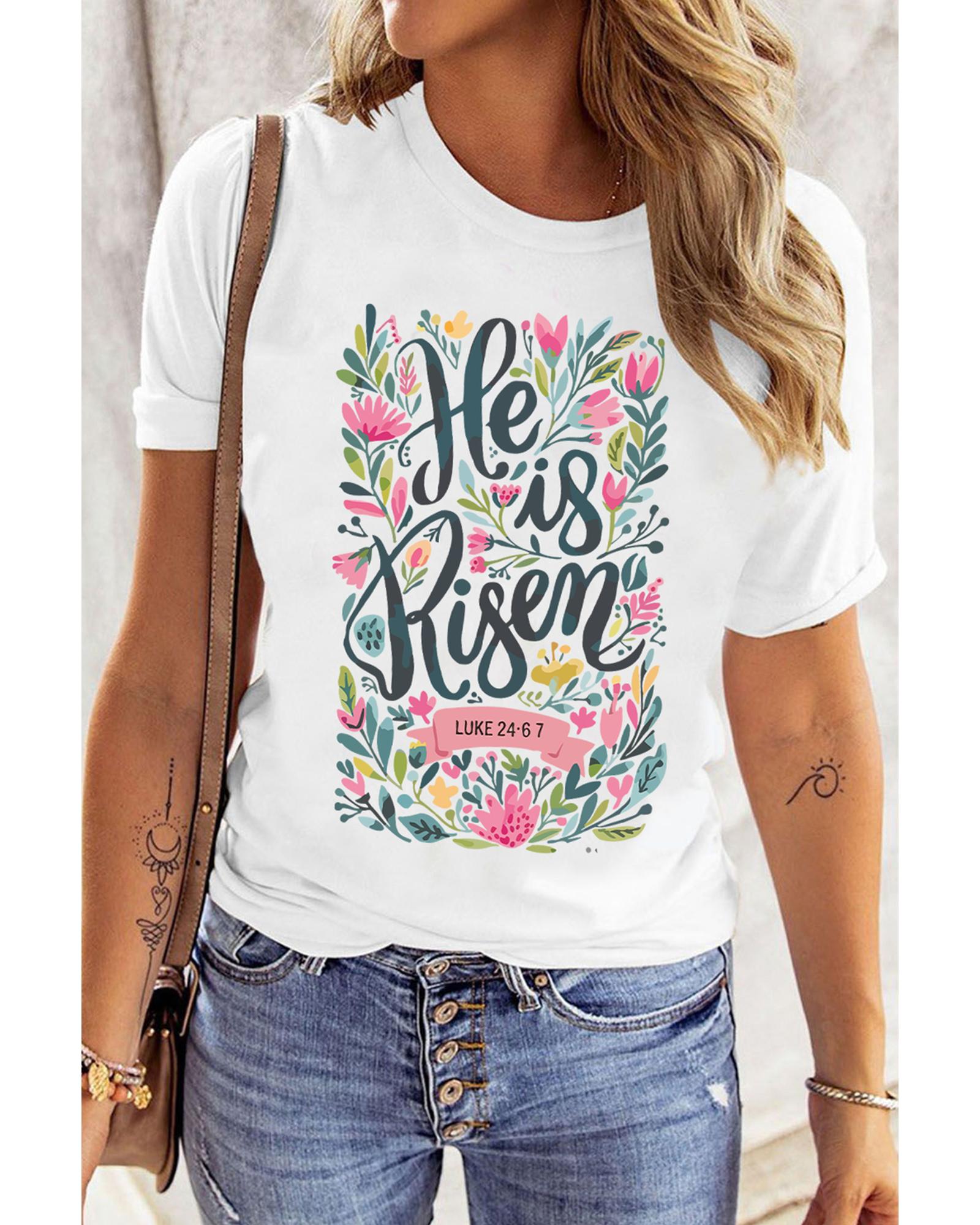 White He is Risen Floral Printed T Shirt – 3XL
