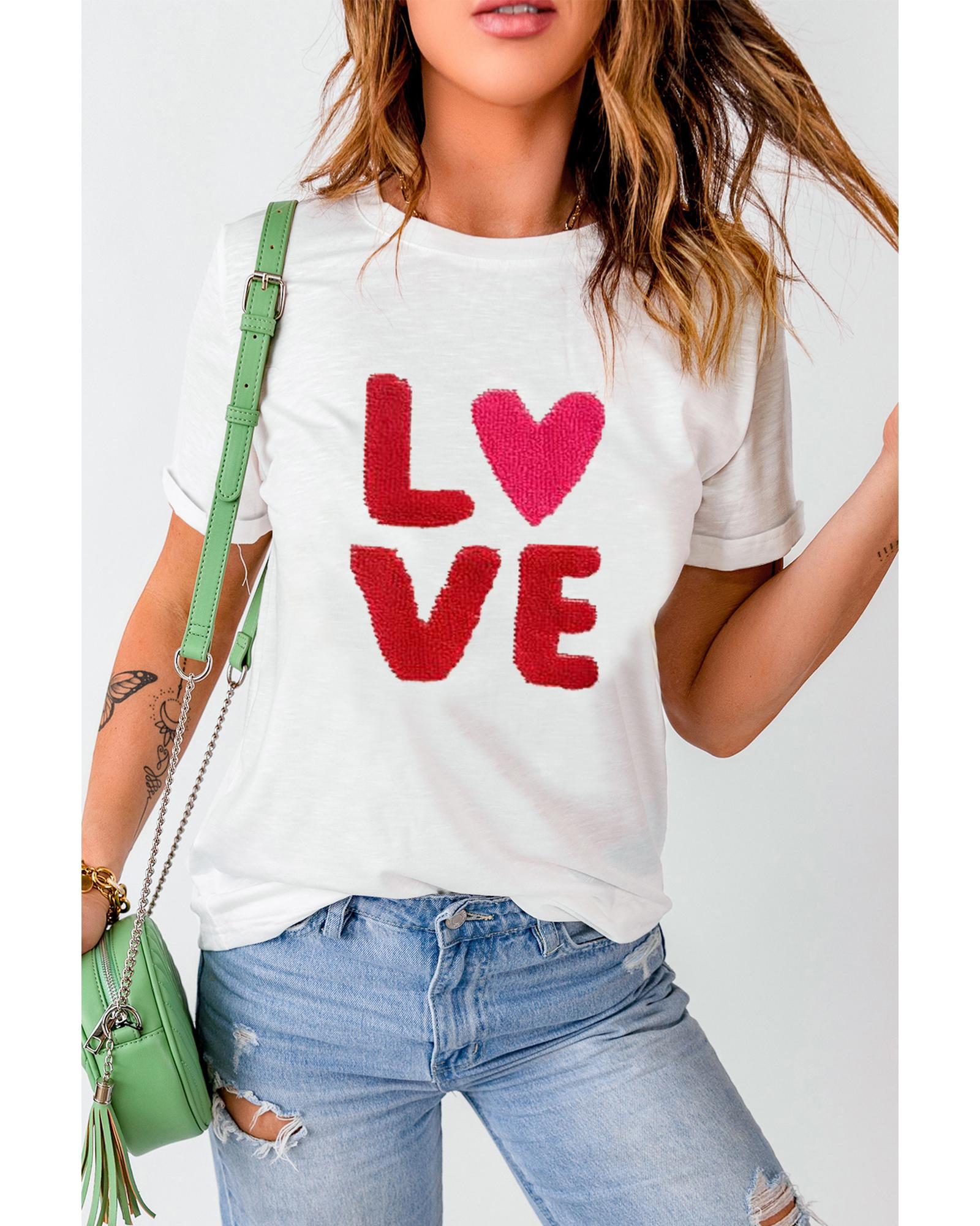White Heart LOVE Graphic Valentines T Shirt – 2XL