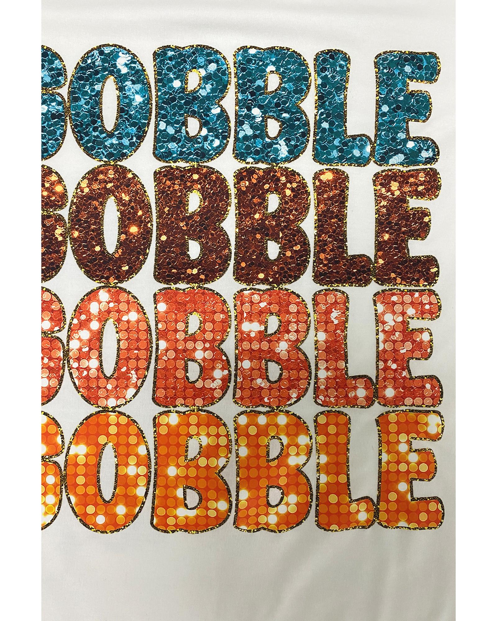 White Heat Transfer GOBBLE Graphic Crewneck Thanksgiving T Shirt – 2XL