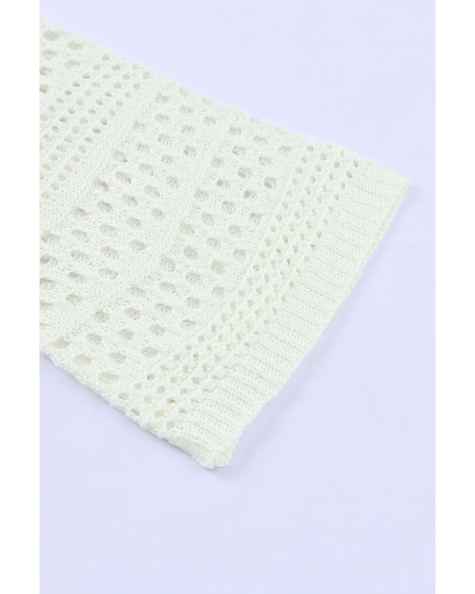 White Hollow Out Crochet V Neck Pullover Sweater – XL