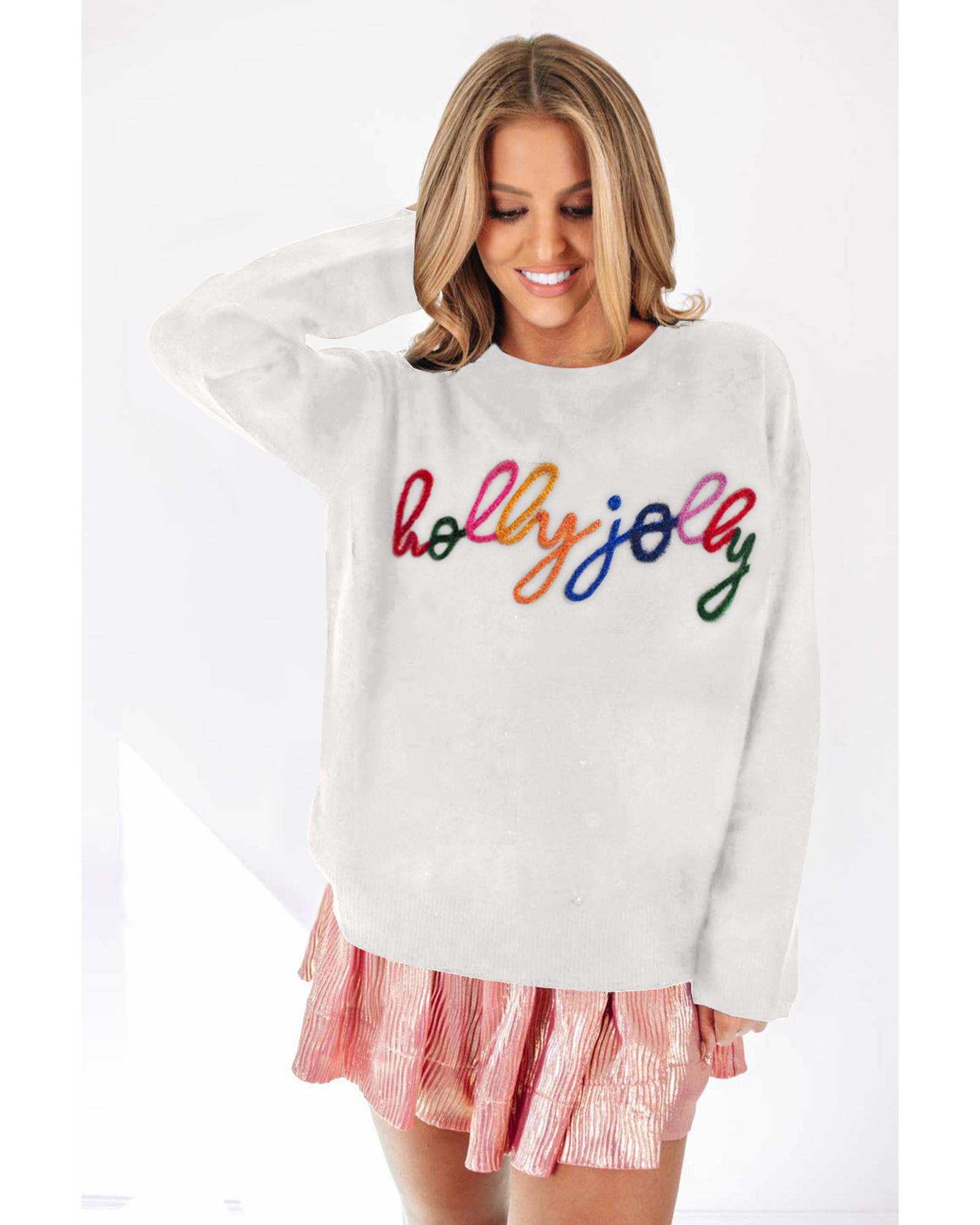 White Colorful Edge Quarter Zip Drop Shoulder Sweater - L