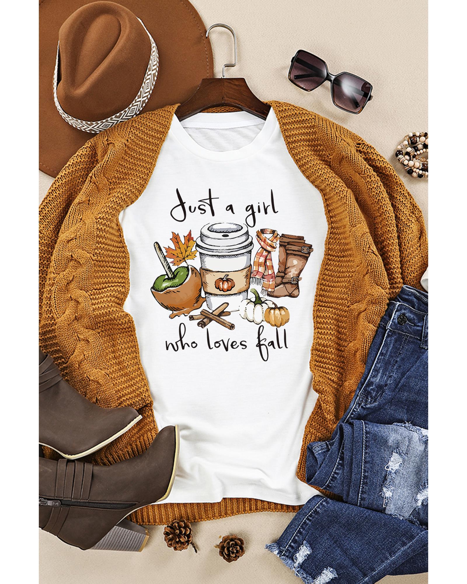 White Just A Girl Who Loves Fall Graphic T Shirt – M