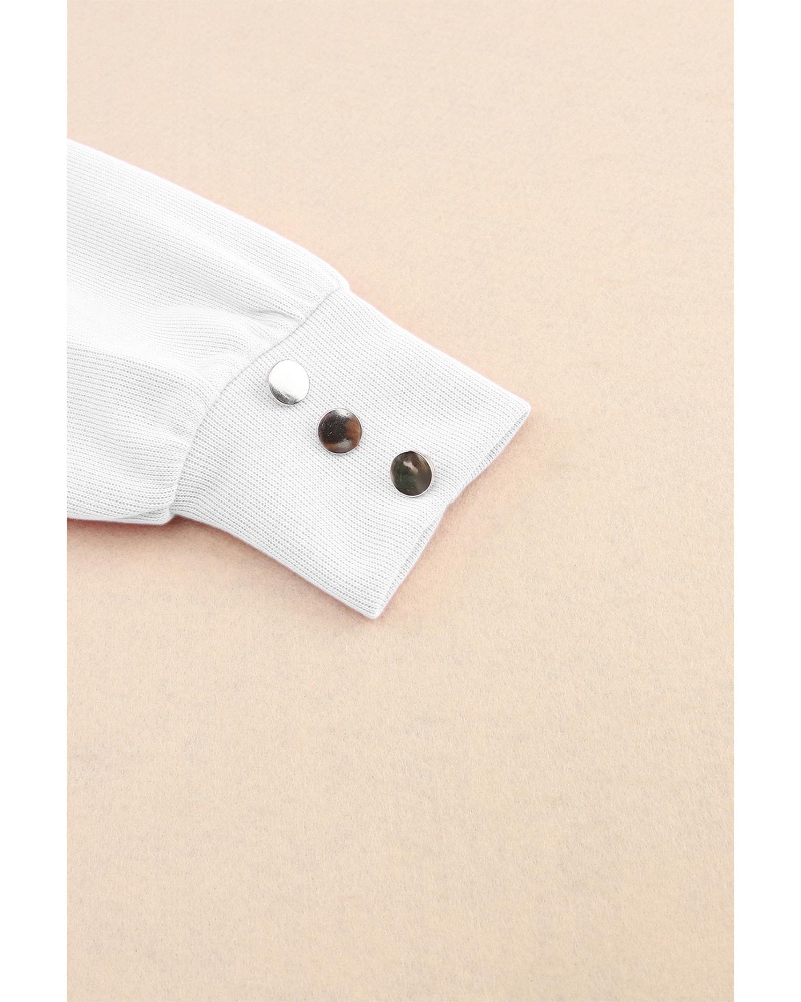 White Knitted V Neck Buttoned Cuffs Sweater – L